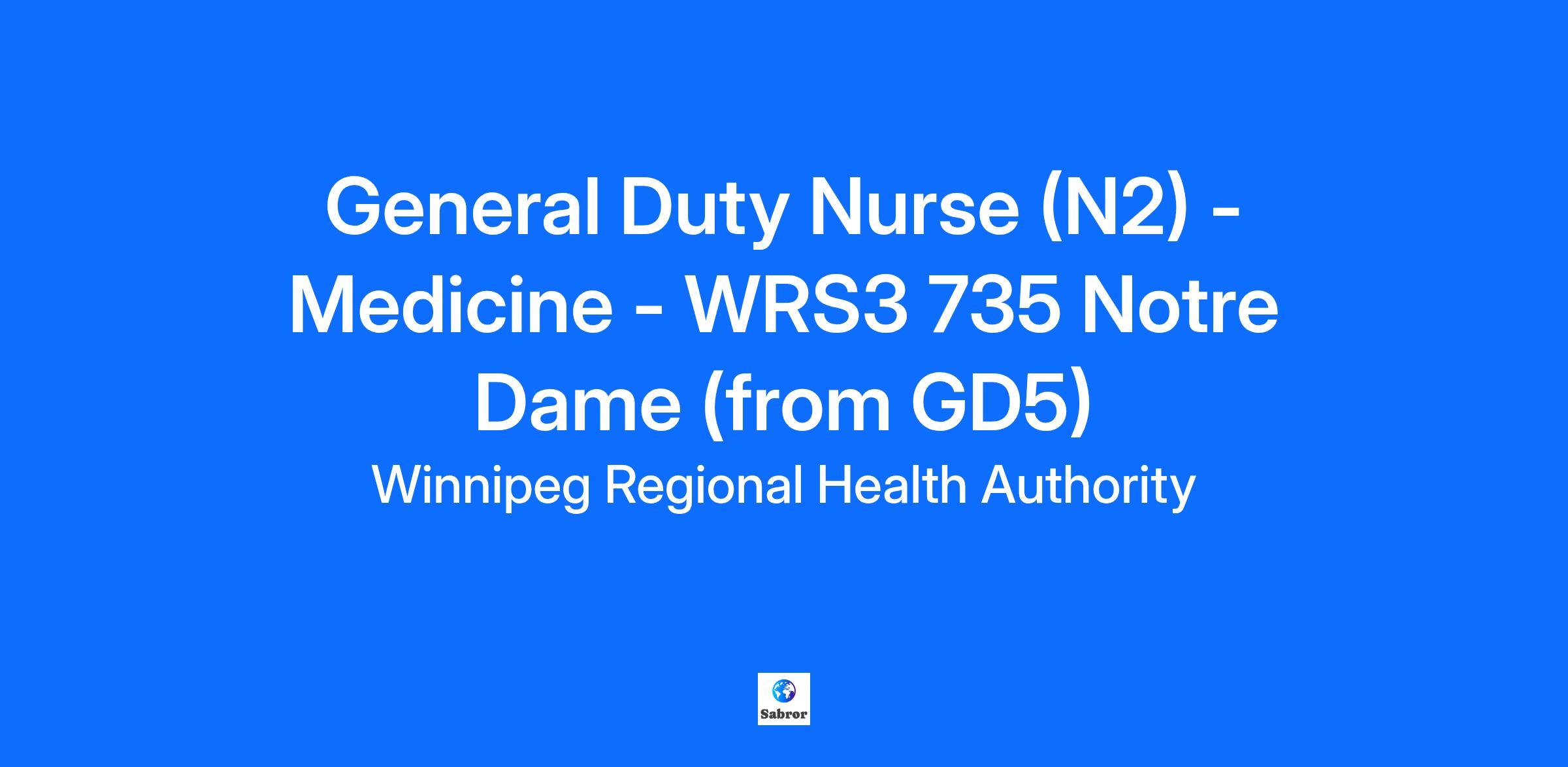 Requisition ID: 388894 Position Number: 20082349 Posting End Date: September 25, 2025 City: Winnipeg Employer: Shared Health Site: Health Sciences Centre Department / Unit: WRS3 735 Notre Dame (from GD5) Job Stream: Clinical Union: MNU Anticipated Start Date: 10/24/2025 FTE: 0.80 Anticipated Shift: Days;Nights;Weekends Work Arrangement: In Person Daily Hours Worked: 11.63 Annual Base Hours: 2015 Shared Health leads the planning and coordinates the integration of patient-centered clinical and preventive health services across Manitoba. The organization also delivers some province-wide health services and supports centralized administrative and business functions for Manitoba health organizations. Position Overview Under the general supervision of the Manager Health Services, the Registered Nurse (RN) is responsible for providing professional registered nursing services for patients, including those with complex and unpredictable health needs. These services include independent nursing services, administration of prescribed medical treatments, a leadership role within the healthcare team, and facilitating coordination of patient care and discharge. Demonstrates a commitment to the vision, values, goals, and objectives of the region/facility/unit. Experience Recent, related, experience is an asset. Education (Degree/Diploma/Certificate) Graduate of an approved Registered Nursing education program required.Certification/Licensure/Registration Responsible for maintaining and providing proof of registration with the College of Registered Nurses of Manitoba (CRNM). Active participation in professional associations e.g. Association of Regulated Nurses of Manitoba (ARNM) preferred. Cardiopulmonary Resuscitation (CPR) training requirements for this position shall be in accordance with the Employer policy. Qualifications and Skills Knowledge of: College of Registered Nurses of Manitoba Standards of Practice for Registered Nurses. Canadian Nurses Association Code of Ethics for Registered Nurses. Scope of practice as documented in the Regulated Health Professions Act (RHPA). Regional/Facility/Unit policies, procedures, protocols, and guidelines. Nursing care knowledge related to clinical area. Personal Health Information Act (PHIA), Protection of Persons in Care Act, Mental Health Act, Workplace Hazardous Material Information System (WHMIS), Principles of Routine Practices (Universal Precautions) and other legislated acts. Roles and responsibilities of members of the healthcare team. Principles of delegation. Demonstrated effective oral and written communication skills. Preference will be given to those applicants competent in an Indigenous language and/or knowledge in Indigenous customs, traditions and values. Demonstrated critical thinking/problem-solving skills. Ability to prioritize care for an individual patient or group of patients. Ability to respond to a variety of simultaneous demands. Ability to recognize and pursue self-development opportunities. Ability to perform independently and as a member of the healthcare team. Ability to adapt quickly to changing situations. Ability to maintain concentration with frequent interruptions. Ability to function in a demanding and stressful environment. Physical Requirements Moderate to heavy physical effort required. Preference will be given to those applicants competent in an Indigenous language and/or knowledge in Indigenous customs, traditions and values We have a unique ability to work together to make health care better. If you want to make a difference and contribute to supporting the health of your family, friends and neighbours, please apply today. Interested candidates should select the "Apply" icon below to upload their cover letter, resume and copy of licenses/certification. This position requires a current satisfactory Criminal Records Check (including Vulnerable Sector Search), Child Abuse Registry Check and Adult Abuse Registry Check as conditions of employment. The successful candidate will be responsible for any service charges incurred. A security check is considered current if it was obtained no more than six (6) months prior to the start of employment. Please note that an employee is not permitted to hold two or more positions in Shared Health that combine to equal more than 1.0 FTE. Shared Health values and supports employment equity and workplace diversity and encourages all qualified individuals to apply. We thank all applicants but only those selected for an interview will be contacted. We welcome applications from people with disabilities. Accommodations are available upon request during the assessment and selection process.