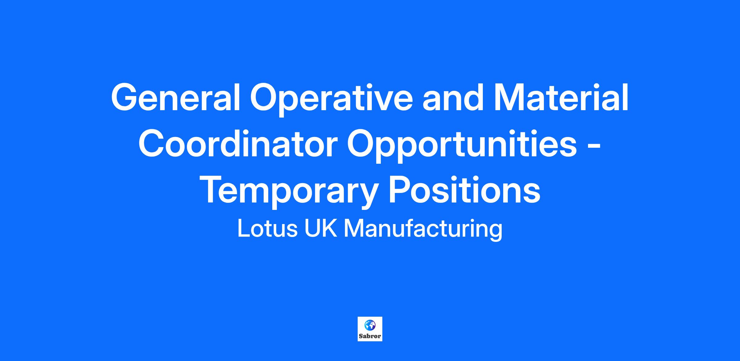 Immediate Start Opportunities – General Operatives & Material Coordinators (temporary) We are currently recruiting General Operatives and Material Coordinators to support a range of manufacturing and production activities within a fast-paced, high-quality environment. These roles offer an excellent opportunity for individuals looking to start work immediately and gain valuable experience across assembly, paint, logistics, or material handling operations. Positions are available on a temporary basis, with opportunities to work across multiple departments depending on business needs. Summary As a General Operative or Material Coordinator, you will play a key role in supporting day-to-day production and operational activities. Working as part of a team, you will help ensure components, materials, and products are prepared, moved, assembled, or finished to required quality standards, while contributing to an efficient, safe, and well-organised workplace. Roles may include: •Assembly support •Paint preparation and finishing •Materials handling and stock movement •Production line support and general factory operations What You’ll Do General Operatives •Assemble, fit, or prepare component parts and panels using a variety of hand or power tools. •Inspect, prepare, or rework components following documented processes. •Support daily production output by meeting quality and quantity targets. •Assist supervisors and team members in achieving build requirements and covering absences when required. •Report issues such as shortages, defects, or process concerns to team leaders. •Follow all operational processes accurately and work within allocated timescales. •Maintain tools, equipment, and PPE in good working condition. •Demonstrate flexibility to work across different production areas as needed. Material Coordinators •Handle, move, and distribute materials, components, and parts across production areas. •Ensure accurate stock handling, including booking in/out, stock checks, and material tracking. •Work closely with logistics and production teams to support continuous workflow. •Operate manual handling equipment (training provided where necessary). •Identify and report shortages, discrepancies, or damaged materials. •Maintain a clean, organised, and safe work environment. What You’ll Bring For both General Operatives and Material Coordinators: •Ability to follow written instructions and documented processes. •Good hand–eye coordination and manual dexterity (for operative roles). •Ability to work under time constraints while maintaining quality. •Good communication skills and strong team-working approach. •Reliable, self-disciplined, and enthusiastic attitude. •Flexibility to adapt to changing work requirements or shift patterns. •Good level of physical fitness, with the ability to lift, stand for long periods, and perform manual tasks. •Ability to understand and communicate effectively in English. Desirable experience or qualifications: •Previous experience in manufacturing, assembly, material handling, or similar environments. •Experience using hand/power tools or manual handling equipment. •Knowledge of automotive, engineering, or production processes. •C&G, NVQ, or similar qualifications in automotive, paint, assembly, logistics, or warehouse operations. •Understanding of Business Improvement Techniques (Level 2 or equivalent). Additional Information •Pay: From £12.28 per hour, with potential overtime at enhanced rates. •Payment: Weekly via an agency (you will be referred for this). •Contract Type: Temporary, working on a week-by-week basis. •Duration: Roles expected to run until towards the end of December 2025. •Start Date: Immediate start •Eligibility: Candidates must have the right to work in the UK without needing visa sponsorship. Our Company: Group Lotus is a leading sports car manufacturer with over 75-year long history of iconic designs, groundbreaking engineering and legendary victories on the F1 track. Today we are transforming into a truly global performance car brand focused on the electrical future. In 2022 we launched the Eletre, the world’s first all-electric hyper-SUV, and in 2023 our fully-electric Hyper-GT, Emeya. As part of the Lotus team, you push boundaries. Those of the car industry and of your own. Every member of the Lotus family has some of the pioneering mindset of founder Colin Chapman in them. Hethel, Norfolk, England has been the home of Lotus for over 60 years, ever since Colin Chapman, our founder, started making championship-winning racing cars. In conjunction with production facilities in Norwich, and research facilities near Warwick, our UK sites offer a wide breadth of roles for all disciplines. We're not just a car company; we're a diverse mix of talent from all walks of life. At Group Lotus, we firmly believe that diversity and inclusion are not just buzzwords but essential pillars of a thriving and successful organisation. Read more here: Equity, Diversity & Inclusion in Lotus Cars. Do you want to know what Sophisticated, Rebellious and Pioneering mean for Lotus Cars Limited? Come and take a look at our career site and join the incredible adventure: https://lotusukmanufacturing.teamtailor.com/