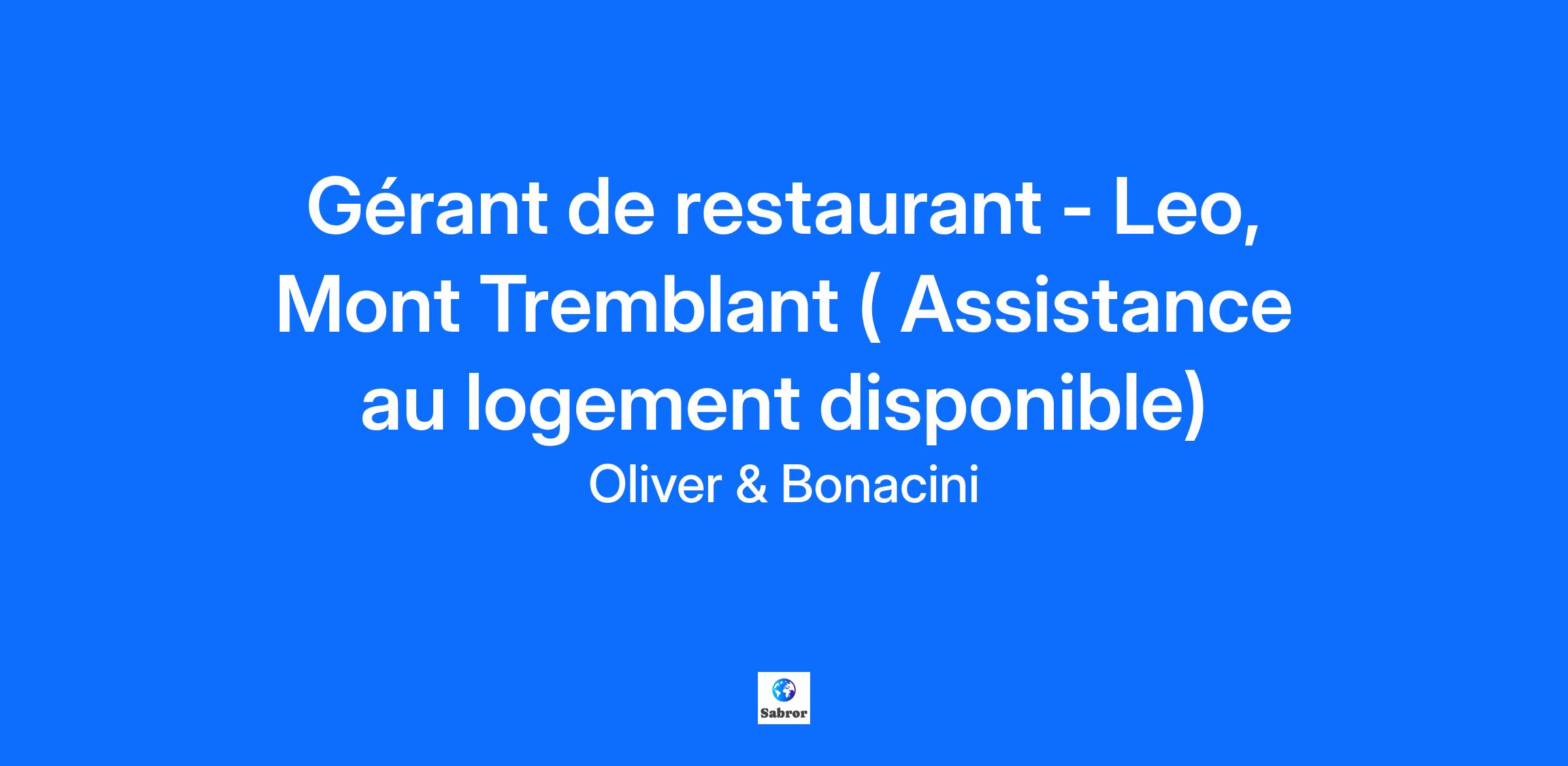 Gérant de restaurant - Leo, Mont Tremblant ( Assistance au logement disponible)
