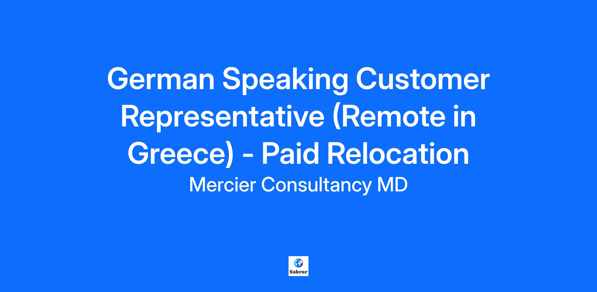 Join Our Team! Are you fluent in German and looking for an exciting opportunity to work remotely from beautiful Greece? At Mercier Consultancy MD, we are in search of a dedicated and enthusiastic German Speaking Customer Representative. This position offers the incredible benefit of paid relocation to Greece, allowing you to enjoy a vibrant lifestyle while making a significant impact in customer service. Your Role: Provide exceptional support to German-speaking clients, ensuring their inquiries are resolved with professionalism and care. Communicate effectively through various channels including phone, email, and chat. Familiarize yourself with our client systems to deliver high-quality service efficiently. Collaborate with team members to ensure timely resolution of customer issues. Fluency in German (both written and spoken) is essential for effective communication with clients. Strong communication skills and a customer-focused approach. Eager to learn and adapt to new technologies suited for remote work. Self-motivated, proactive, and able to thrive in a fast-paced environment. Open to relocating to Greece for this remarkable opportunity! Competitive Monthly Salary Monthly Performance Bonus Fully Paid Relocation Package Fully Paid Training Health Insurance And Much More...