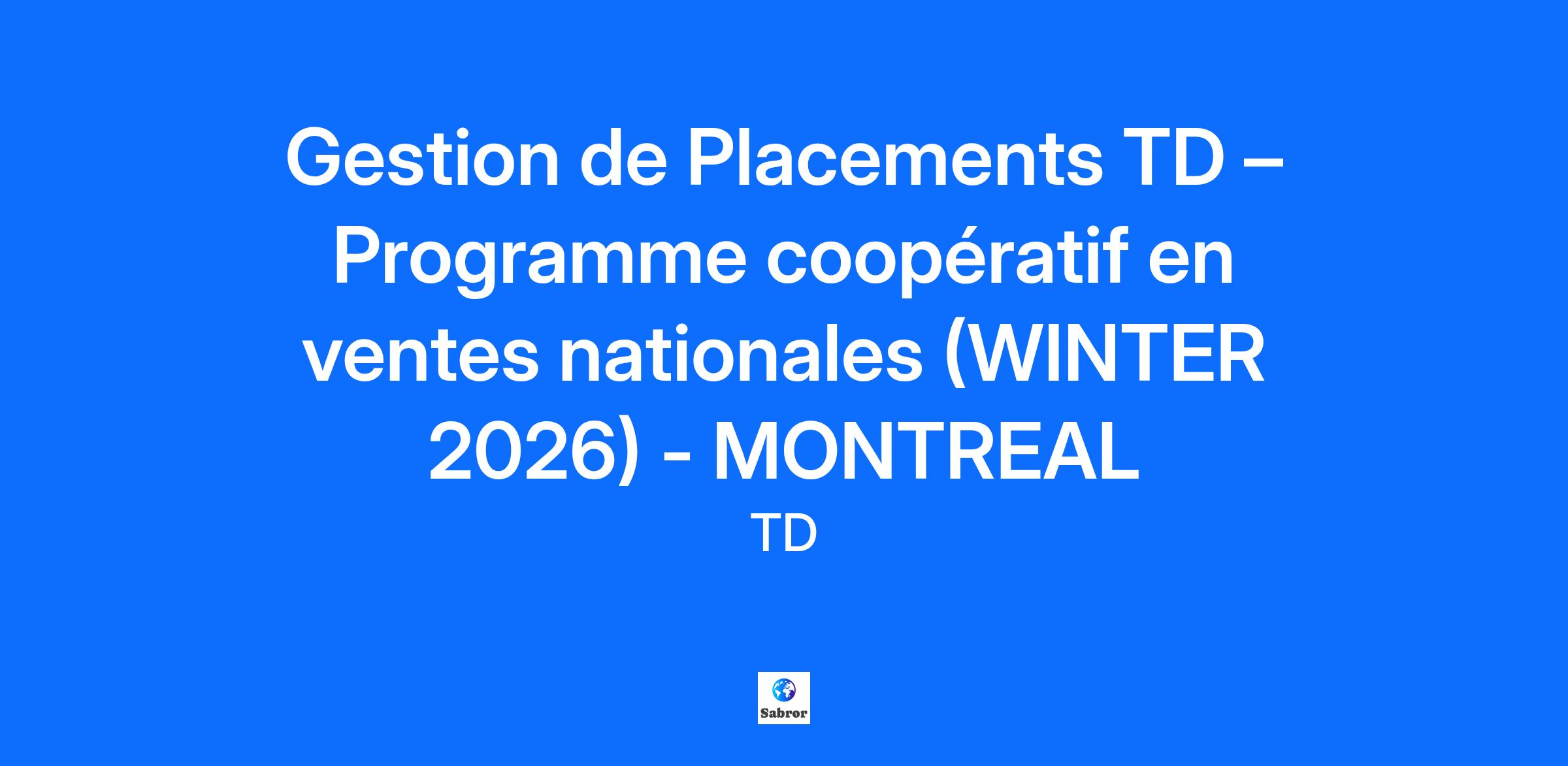 Role Type: Internship/Co-op Work Term: Winter/Term 2 Work Location: Montréal, Quebec, Canada Hours: 37.5 Pay Details: $48,000 - $68,000 CAD TD is committed to providing fair and equitable compensation opportunities to all colleagues. Growth opportunities and skill development are defining features of the colleague experience at TD. Our compensation policies and practices have been designed to allow colleagues to progress through the salary range over time as they progress in their role. The base pay actually offered may vary based upon the candidate's skills and experience, job-related knowledge, geographic location, and other specific business and organizational needs. As a candidate, you are encouraged to ask compensation related questions and have an open dialogue with your recruiter who can provide you more specific details for this role. Job Description: Gestion de Placements TD – Programme coopératif en ventes nationales Apercu du service Gestion de Placements TD (GPTD), qui est membre du Groupe Financier Banque TD, est l’une des principales sociétés canadiennes de gestion de placements. En date du 30 décembre 2020, GPTD et ses sociétés affiliées géraient un actif de plus de 407 milliards de dollars d’actifs pour les comptes de caisses de retraite, de compagnies d’assurance, de fonds de dotation, de fondations et d’entreprises. La firme gère aussi des actifs pour des clients à valeur nette élevée et des fonds communs de placement offerts aux particuliers, tant en solutions de gestion fondamentale active qu’en solutions quantitatives. En ce qui a trait aux placements de détail, GPTD est la troisième société de gestion de fonds communs de placement en importance au Canada. Elle gère des actifs pour le compte de plus de 1,9 million d’investisseurs et propose l’une des familles de fonds les plus diversifiées au pays. Un élément clé du succès de GPTD est sa capacité à collaborer avec ses clients pour concevoir des solutions personnalisées qui répondent à leurs besoins et objectifs à mesure que ceux-ci évoluent. L’équipe Distribution aux conseillers de GPTD offre une gamme de fonds communs de placement et de portefeuilles gérés grâce à une équipe nationale de ventes et de service comptant plus de 100 personnes. L’équipe des ventes est responsable de vendre des Fonds Mutuels TD par l’entremise de conseillers externes (courtiers, conseillers et planificateurs financiers tiers) qui contribuent aux actifs de Fonds Mutuels TD à hauteur de plus de 100 milliards de dollars. GPTD gère collectivement des actifs de plus de 260 milliards de dollars, ce qui en fait l’un des plus importants gestionnaires d’actifs au Canada. À la TD, nous avons à cœur d’appuyer votre perfectionnement professionnel et de vous donner de la formation pour garantir votre réussite maintenant et dans l’avenir. Notre programme de stages et d’enseignement coopératif vise à vous aider à mieux comprendre la TD, à développer vos compétences professionnelles essentielles et à élargir votre réseau professionnel. Le programme est conçu pour compléter votre expérience sur le terrain et comprend : Des discussions de leadership avec des dirigeants clés à l’échelle de l’entreprise Des dîners-causeries sur des thèmes comme l’innovation Une culture axée sur la diversité et l’inclusion, l’image de marque personnelle et plus encore. L’OCCASION Découvrir le secteur de la gestion d’actifs Comprendre la collaboration de GPTD avec les professionnels des placements Collaborer avec nos équipes pour comprendre l'entièreté du cycle de vente Obtenir l’information des gestionnaires de portefeuille de GPTD sur l’économie, les marchés et la construction de portefeuilles Apprendre à analyser les portefeuilles et les stratégies de placement Description du poste Relevant du directeur des ventes internes, le ou la stagiaire, servira de point de contact pour l’équipe des ventes de GPTD en vue de fournir du soutien pour la gamme complète de produits et services offerts par l’entremise du canal de vente des Services aux courtiers. La clientèle du canal de vente des Services aux courtiers comprend notamment les négociateurs, les gestionnaires de portefeuille, les conseillers en placement et les courtiers. Responsabilités Offrir du soutien administratif et aux ventes à deux équipes des ventes Prendre en charge l’ensemble des aspects du calendrier pour le territoire, en assurant une coordination et une prise de rendez-vous proactives de manière à utiliser efficacement et stratégiquement le temps des fournisseurs de services bancaires de gros. Toutes les tâches au niveau du territoire (activités, ventes, etc.) sont exécutées de façon efficace et en temps opportun. Le nouveau matériel et les nouveaux rapports de marketing sont présentés à l’équipe des ventes aux fins d’information et de discussion, pour produire des résultats. Tenir à jour les dossiers des clients dans le répertoire de données Imprimer, rassembler et expédier les commandes de matériel, les trousses de présentation, les envois territoriaux, les courriels, etc. Produire les rapports selon le cycle Agir à titre de personne-ressource principale pour le territoire en ce qui concerne le programme coopératif, le marketing, la base de données sur les dépenses, etc. Fournir un leadership qui est en harmonie avec la stratégie d’ensemble du canal au sein de toutes les équipes – territoriale, régionale et nationale Acquérir, maintenir à jour et appliquer des connaissances approfondies sur les solutions et l’offre de produits au sein de Gestion de patrimoine TD et sur les tendances du secteur. Exigences du poste Étudiant ou étudiante d’un programme de premier cycle en finances, en comptabilité, en commerce ou en administration des affaires qui a l’intention de retourner aux études à la fin de son stage. (Occasion d’être promu[e]