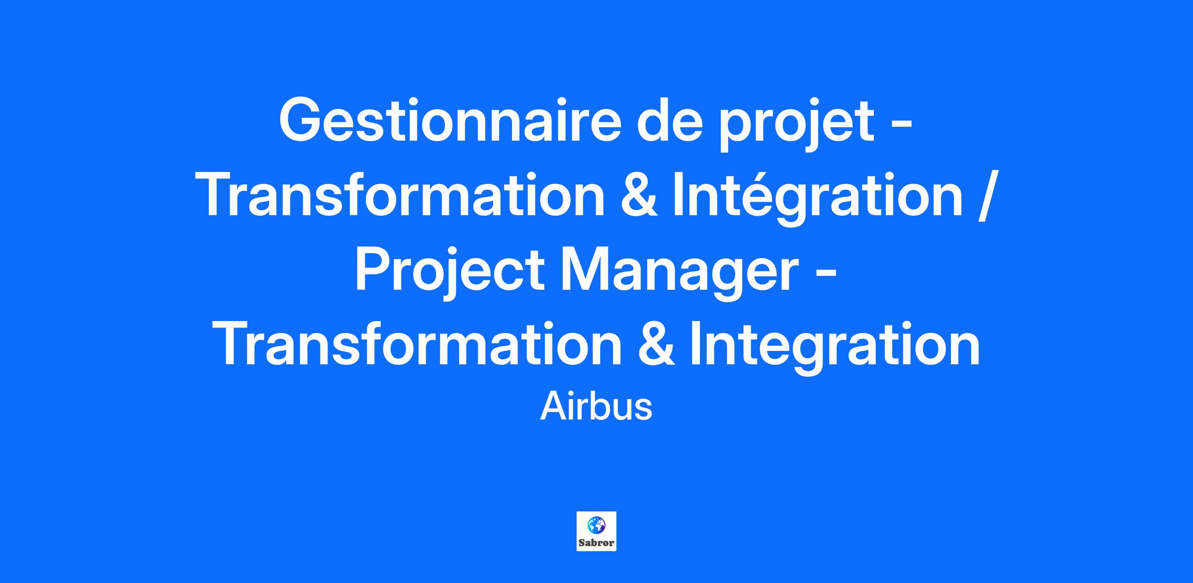 Gestionnaire de projet - Transformation & Intégration / Project Manager - Transformation & Integration