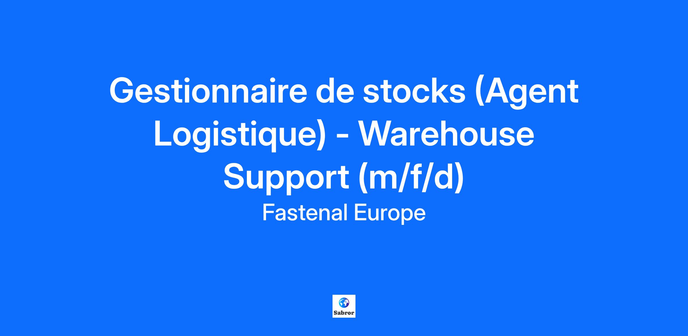 APERÇU La société Fastenal Europe est heureuse d’inviter toutes personnes ambitieuses et enthousiaste à postuler pour le poste de: Gestionnaire de stocks (Agent Logistique) - Warehouse Support (m/f/d) Si vous possédez l'esprit d'entreprise et que vous souhaitez vous démarquer en faisant partie d'une société d'exception en plein essor, Fastenal répondra à tous vos besoins. RESPONSABILITÉS Les tâches et responsabilités de ce poste comprennent, mais ne sont pas limitées à: Chargement et déchargement des camions Viser les documents de transport Effectuer les réceptions et inspections des produits Ranger et stocker le matériel selon les règles internes de l’agence Préparation des commandes Opération de manipulation des cartons Gestion des activités courantes de l’entrepôt, rangement, nettoyage, etc… Effectuer des livraisons chez nos clients Effectuer le remplissage des Machines Distributrices chez les clients Réalisation des inventaires de l’entrepôt Assurer l’image de marque de la société Fastenal QUALIFICATIONS REQUISES POUR LE POSTE Les compétences et qualifications suivantes sont requises pour ce poste: Formation commerciale ou technique BAC, BAC+2 Dynamique, rigoureux, relationnel et sens du service client Vous maitrisez l’informatique Être titulaire du permis de conduire Bon niveau d’Anglais FASTENAL VOUS OFFRE Un emploi stimulant, diversifié et motivant Carrière dans une organisation mondiale en rapide évolution Travailler dans un environnement international Un CDD de 6 mois avec possibilité de CDI Nos employés Fastenal vivent et travaillent selon les 4 valeurs culturelles suivantes Ambition – Innovation – Intégrité – Esprit d’équipe FASTENAL Plus de 20 000 employés et 2300 succursales dans le monde, Société de distribution spécialisé dans la fournitures industrielles et d’éléments de fixations destinés à une clientèle B to B. Avec plus de 110 000 distributeurs dans le monde, Fastenal est le numéro Un mondial sur ce créneau. En marge de notre croissance sur la scène internationale, nous croyons en l'aptitude d'accomplir des projets exceptionnels dont font preuve les gens lorsqu'on leur en donne les moyens. De cette philosophie découle une culture entrepreneuriale qui pousse chaque employé à exploiter sa propre entreprise, à conditionner sa propre réussite, et à s'élever au niveau de chef d'entreprise. Fastenal s'engage à former ses employés, à leur proposer une évolution de carrière en interne et à créer des opportunités favorables