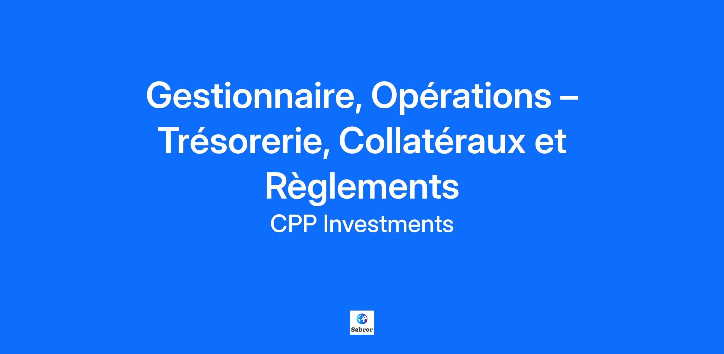Description de l'entreprise Faites votre marque au sein d’un organisme de placement dynamique d’envergure mondiale Lorsque vous rejoignez CPP Investments, vous rejoignez l'un des investisseurs institutionnels les plus admirés et respectés au monde. En tant qu'organisation professionnelle de gestion des investissements, CPP Investments investit les fonds du Régime de pensions du Canada (RPC) pour aider à assurer sa durabilité financière pour les générations de Canadiens actifs et retraités. CPP Investments investit dans différentes régions et classes d'actifs pour constituer un portefeuille diversifié à l'échelle mondiale. Il détient des actifs en actions publiques, actions privées, immobilier, infrastructures et revenu fixe, et le Fonds du RPC devrait atteindre 3,6 trillions de dollars d'actifs d'ici 2050. L'organisation est basée à Toronto avec des bureaux à Hong Kong, Londres, Mumbai, New York, San Francisco, São Paulo et Sydney. Investissements RPC réussit à attirer, à sélectionner et à retenir des personnes talentueuses d’institutions de premier ordre de partout dans le monde. Joignez-vous à notre équipe pour profiter de ce qui suit : Évoluer dans un environnement de travail hautement dynamique et stimulant intellectuellement Voir votre rôle et vos responsabilités s’accroître rapidement Profiter d’occasions mondiales de perfectionnement professionnel Travailler avec des collègues inspirants qui ont des parcours différents et avec des dirigeants faciles à aborder Un milieu de travail souple et hybride mettant l’accent sur la collaboration en personne Partager de solides valeurs d’intégrité, de collaboration et d’excellence du rendement Une organisation dotée d’un objectif social important qui a une incidence positive sur la vie des gens Si vous êtes animé par le rendement, reconnaissez l’importance d’une culture axée sur la collaboration et la collégialité et avez un sens de l’intégrité à toute épreuve, investissez votre carrière ici. Description du poste En tant que gestionnaire au sein de l’équipe des Opérations de règlement du département des Opérations de placement, vous dirigerez une équipe responsable de l’exécution de bout en bout des processus d’affirmation, de confirmation et de règlement des transactions sur les marchés des actions cotées, titres à revenu fixe/repo, marchés monétaires et devises. Vous assurerez la supervision, l’expertise technique, et veillerez à ce que les processus opérationnels soient exécutés avec précision, ponctualité et des contrôles rigoureux des risques. Ce poste exige une gestion proactive des problèmes, une collaboration efficace avec les partenaires d’affaires, ainsi qu’un fort accent sur l’efficacité, l’atténuation des risques et le développement des talents. Description de l’équipe L’équipe des règlements, au sein des Opérations de placement, est responsable de la gestion et de la supervision des affirmations, confirmations et règlements des transactions sur divers marchés publics, notamment les actions, obligations, accords de rachat (repo), instruments du marché monétaire, emprunts et prêts de titres, et opérations de change. L’équipe soutient les activités de négociation de l’OIRPC, en garantissant l’efficacité des processus et des contrôles, tout en maintenant de solides partenariats internes et externes. Responsabilités : Offrir un leadership quotidien à l’équipe responsable de l’affirmation, confirmation et règlement des transactions. S’assurer que les transactions sont traitées, rapprochées et réglées avec exactitude, selon les délais du marché et les politiques internes. Établir et suivre les indicateurs clés de performance et de risque, en escaladant et en résolvant les problèmes de manière proactive. Agir comme expert(e) en la matière pour divers types de transactions cotées (actions, revenu fixe/repo, marché monétaire, règlement FX). Fournir une orientation sur les enjeux complexes ou escaladés, en garantissant le respect des bonnes pratiques et des exigences réglementaires. Soutenir les initiatives d’affaires grâce à une expertise en opérations de marché et processus post-négociation. Collaborer avec les parties prenantes internes (négociation, gestion de portefeuille, finances, affaires juridiques, conformité et autres équipes d’opérations) pour atteindre les objectifs communs et résoudre les problèmes liés aux transactions. Maintenir de solides relations externes avec les courtiers, dépositaires et courtiers principaux pour assurer un règlement efficace et la résolution des problèmes. Représenter l’équipe lors de forums ou initiatives internes/externes pour renforcer l’alignement opérationnel. Identifier les opportunités d’optimisation, d’automatisation des flux de travail, et d’amélioration de l’efficacité. Mettre en place des mécanismes de gouvernance et de contrôle solides pour atténuer les risques opérationnels, financiers et réputationnels. Évaluer continuellement les processus pour combler les lacunes et renforcer la résilience et l’efficacité opérationnelle. Gérer, encadrer et développer les membres de l’équipe, favoriser leur expertise et appuyer leur progression de carrière. Instaurer une culture d’responsabilisation, d’apprentissage continu et de collaboration. Définir une structure claire, communiquer les attentes et fournir un retour régulier pour soutenir la performance de l’équipe. Qualifications Diplôme universitaire ou collégial dans un domaine connexe. 6 ans ou plus d’expérience pertinente en opérations financières ou de règlement. Désignations professionnelles telles que CBV, CFA ou CPA considérées comme des atouts. Solides compétences analytiques, en finance et en comptabilité de gestion. Expérience avec Bloomberg, SimCorp, et les plateformes d’affirmation/matching de tra