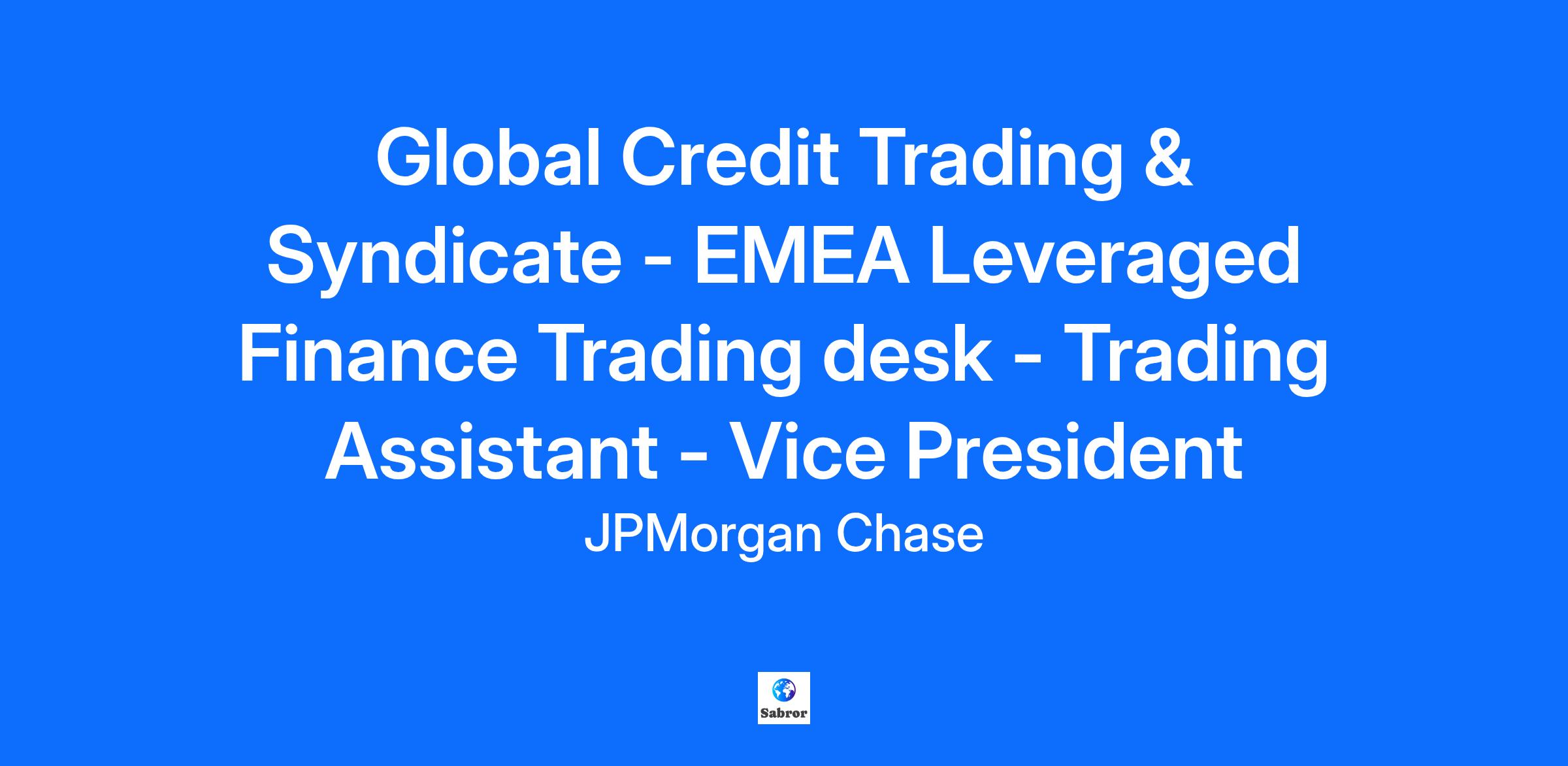 The EMEA Leveraged Finance Trading business is part of the Corporate and Investment Bank’s Global Credit Trading platform. The Loan Trading desk primarily operates as an intermediary, providing liquidity in syndicated loan commitment for its clients which include European banks, credit funds, CLO investors, hedge/distressed funds and private equity managers. It looks at opportunities across the credit spectrum, offering clients investment grade paper, special situations assets and instruments undergoing complex restructurings. The Loan Trading desk also operates as the distribution platform for syndicated loans newly issued by the bank and works closely with Debt Capital Markets and Acquisition and Leveraged Finance teams. As a Vice President Trading Assistant within the EMEA Leveraged Finance Trading desk, you will provide support coverage to 5 traders, 9 sales personnel and 6 desk analysts and ensure the smooth running of the desk. You must be able to work on a trading floor environment as a team player and possess a keen commercial interest and analytical inquisitiveness. You will have experience of working with the loan product in stressed corporate situations and possess an ability to apply your commercial knowhow to what may seemingly be operational challenges. You will work well under pressure and be able to make quick decisions whilst multi-tasking. Job responsibilities Work with the Desk’s traders and analysts to manage stressed risk commitments through a variety of corporate action events up to full balance sheet restructurings; Handle both credit specific and ad-hoc queries from traders, sales personnel and desk analysts; Assist the Desk’s clients to understand the complexities of specific commercial situations with the help of its salespeople; Work with the Desk’s legal and documentations teams to ensure trades and restructured lending positions are correctly documented; Be on hand to assist with queries from documentation, settlements and operational teams; including making trade amendments within the Bank’s booking systems; Provide reporting to senior desk management on various aspects of the business including trading volumes and client activity; Affirm and enter executed loan, bond and equity trades into the relevant front office platforms where necessary; Ensure the Desk’s daily risk activity is correctly reflected in the Bank’s systems; Review and reconcile daily P&L reporting and investigate discrepancies; Ensure the relevant KYC and credit appetite are in place for each trade and seek approval where necessary. Required qualifications, capabilities and skills Experience working with the syndicated loan product, preferably in an operational capacity; A working knowledge of the equity and bond asset classes, including Clearing settlement; Strong mathematical and analytical skills with the ability to solve problems methodically; Accomplished Excel skills with transaction modelling and presentation experience; A working knowledge of Loan IQ. Preferred qualifications, capabilities and skills Previous experience in trading support or a portfolio management assistant role is preferable.