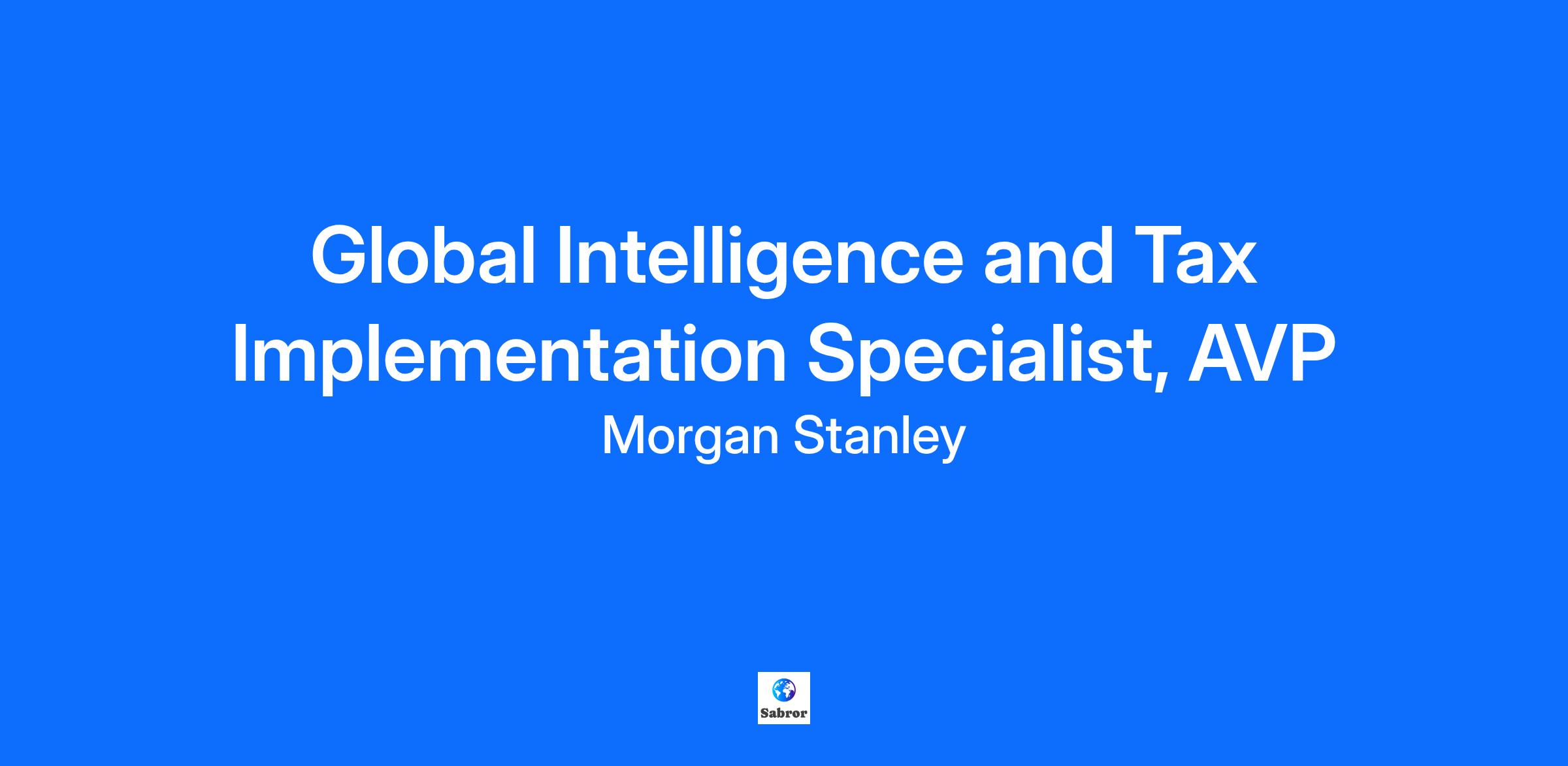 Global Intelligence and Tax Implementation Specialist, AVP