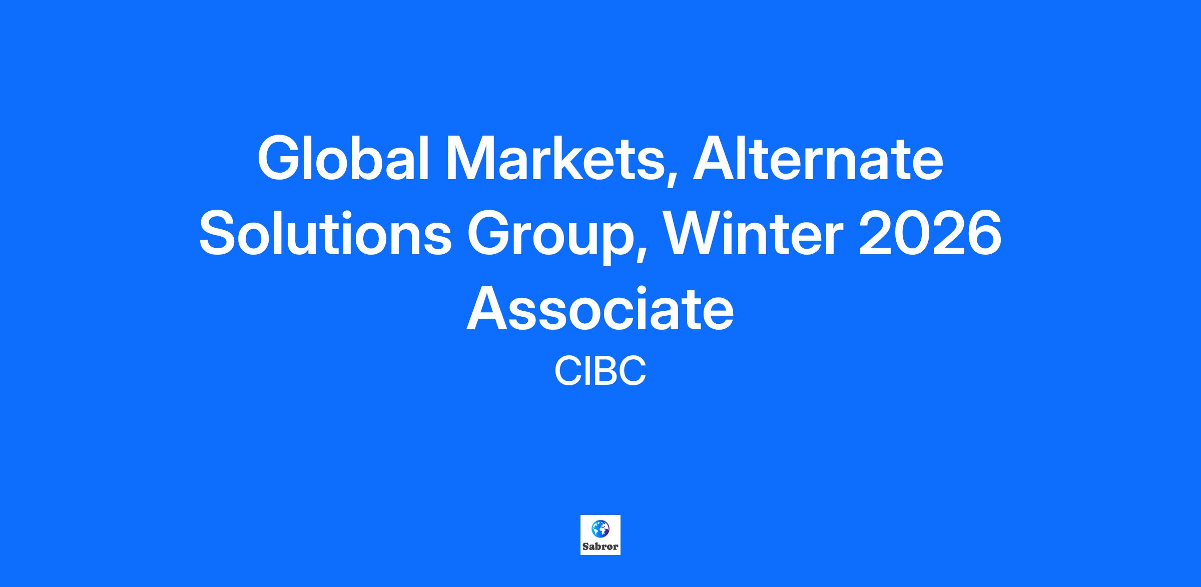 We’re building a relationship-oriented bank for the modern world. We need talented, passionate professionals who are dedicated to doing what’s right for our clients. At CIBC, we embrace your strengths and your ambitions, so you are empowered at work. Our team members have what they need to make a meaningful impact and are truly valued for who they are and what they contribute. To learn more about CIBC, please visit CIBC.com What you’ll be doing Join the Alternate Solutions Group (ASG) as a Winter Associate and make a real difference for our clients. Within CIBC Global Markets, ASG was launched in 2013 with a mandate to develop innovative and creative technology-driven capital markets solutions. This group is an unconventional capital markets organization that combines the innovative spirit and agility of a FinTech startup with the financial strength and strong governance protocol of a major financial institution. ASG has been recognized as a global leader in providing disruptive technological capital markets solutions in several product areas including Cross Border Payments, Dynamic Currency Conversion, International Student Payments, Foreign Cash & Precious Metals Online and white labeling thereof. You’ll be part of the team that focuses on understanding the FinTech industry & disruptive technologies that are revolutionizing traditional banking products and services with a particular focus on FX & payments. You’ll have an opportunity to support the ASG team with product development along with sales and marketing across a number of client types including financial institutions, public sector clients, corporates, small businesses and CIBC’s retail branch network. You may also have the opportunity to work with ASG leadership to increase Profit and Loss (PnL) and productivity and be measured on your ability to both expand product capability, distribution and grow PnL. You’ll have the chance to work closely with product heads to develop appropriate solutions with timely execution, monitor and analyze market activities & economic factors on an ongoing basis throughout the day to be able to respond to client requests. At CIBC we enable the work environment most optimal for you to thrive in your role. To successfully perform the work, you’ll be on-site full-time. Important information You are enrolled in an MBA or master's degree in economics, STEM (Science, Technology, Engineering, Math), or related program at the time of the internship, with a graduation date no earlier than August 2026. Please include your resume (no more than 2 pages), a cover letter (no more than 1 page), and your most recent unofficial transcript with your application. These should all be uploaded into the resume section of your application. Location: Toronto Duration of work term: 4 months (January 2026 – April 2026) This posting will close on Monday, September 22nd, 2025, at 11:59PM EST. Applications are being reviewed on a rolling basis; we encourage you to apply as soon as possible. How you’ll succeed Passion for financial markets – Demonstrate strong technical, quantitative, and analytical skills, with keen interest in the financial markets and proven record of academic success, teamwork and extracurricular involvement. Business analysis - Formulate solution scope and objectives to meet the business need and validate requirements, testing, training and implementation of applications. Project management – Ensure execution of project control procedures and policies within a number of unrelated large projects. Communication – Partner with your team to make an impact by applying a technical skillset to help generate insights and/or optimize processes. Showcase highly effective written, oral and presentation skills with an ability to explain complex concepts. Reporting, analytics and research - Analyze business opportunities and present recommendations to address through analysis, reporting and research Who you are You have demonstrated interest in Capital Markets. You’ve built a strong knowledge of Capital Markets, FinTech and the financial services industries which allows you to analyze complex issues and identify & develop innovative opportunities, with a focus on FX & payments. You give meaning to data. You enjoy investigating complex problems and making sense of information. You're confident in your ability to communicate detailed information in an impactful way. You’re digitally savvy. You are proficient in MS-office suite of tools (Word, PowerPoint, Excel, etc.) and are able to use them for financial modeling, presentations and technical project documentation. You're passionate about people. You find meaning in relationships and surround yourself with a diverse network of partners. You build trust through respect and authenticity. You understand that success is in the details. You notice things that others don't. Your critical thinking skills help to inform your decision making. Values matter to you. You bring your real self to work, and you live our values – trust, teamwork and accountability. You’re passionate about staying up-to-date with emerging technologies. Experience with Salesforce, Python, Power BI, and courses in Artificial Intelligence are preferred What CIBC Offers At CIBC, your goals are a priority. We start with your strengths and ambitions as an employee and strive to create opportunities to tap into your potential. We work to recognize you in meaningful, personalized ways including a competitive compensation, a banking benefit*, wellbeing support, and additional offers such as employee and family assistance programs and MomentMakers, our social, points-based recognition program. Our spaces and technological toolkit will make it simple to bring together great minds to create innovative solutions that make a difference for our clients. *Subject to program terms and conditions What you need to know CIBC is committed to creating an inclusive environment where all team 