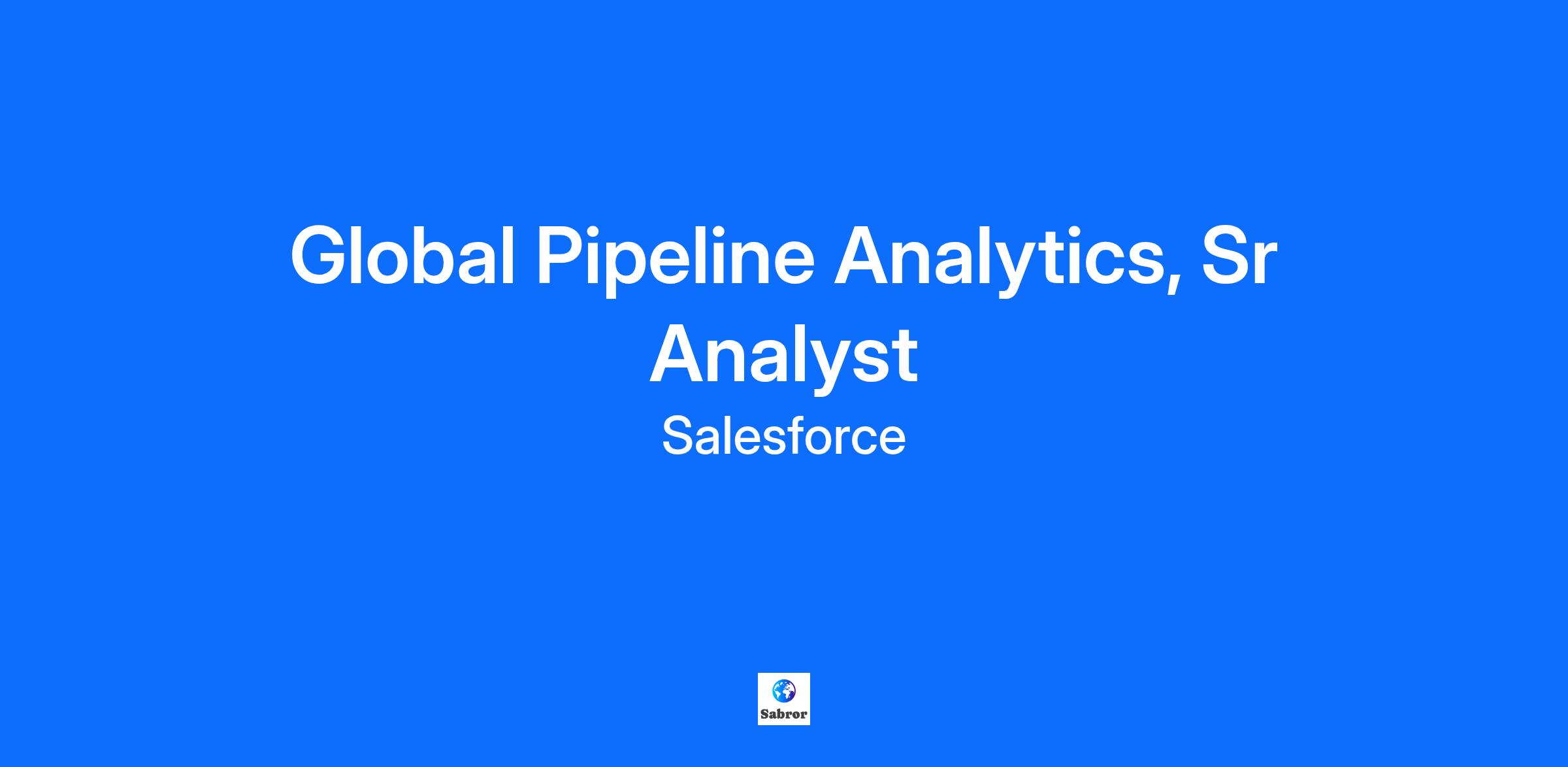 To get the best candidate experience, please consider applying for a maximum of 3 roles within 12 months to ensure you are not duplicating efforts. Job Category Operations Job Details About Salesforce Salesforce is the #1 AI CRM, where humans with agents drive customer success together. Here, ambition meets action. Tech meets trust. And innovation isn’t a buzzword — it’s a way of life. The world of work as we know it is changing and we're looking for Trailblazers who are passionate about bettering business and the world through AI, driving innovation, and keeping Salesforce's core values at the heart of it all. Ready to level-up your career at the company leading workforce transformation in the agentic era? You’re in the right place! Agentforce is the future of AI, and you are the future of Salesforce. The CRO Pipeline and Operations team is responsible for driving a best-in-class go-to-market (GTM) model for Salesforce and providing company leadership with global, accurate, and thoughtful insights to inform GTM decisions that accelerate growth. We are looking for an Analyst/Sr. Analyst to join the Global Pipeline team. This individual will focus on helping build/maintain global sales pipeline reporting and share key analytical insights with our stakeholders around the world. This high-visibility role will involve a mixture of measuring and monitoring sales pipeline performance, helping drive various strategic & operational projects end-to-end, and surfacing business highlights and challenges to accelerate Salesforce pipeline and ACV. The focus of this work will be conducting analyses to diagnose the health of pipeline for sales leaders, regions, segments, and products to identify and address gaps or needs. The role requires intense analytical rigor, attention to detail, and an ability to extract strategic insights to improve the health of the business. A successful candidate will be someone who can balance operational with strategic, is not afraid to dive into organizing tough and complex datasets, has relentless curiosity to ask tough questions and seek answers, can work independently and collaborate cross-functionally, has superior analytical skills, and can deliver insights under tight timelines. Roles & responsibilities include: Support in owning the measurement and monitoring of the company’s pipeline health – define the right metrics to track, optimize analytics currently in place, build additional infrastructure and scalability to report on key metrics, and analyze the results to draw strategic insights Deliver on global strategy initiatives by structuring complex problems, performing thorough analyses, developing compelling solutions, and presenting recommendations Drive the annual pipe generation target setting model process Partner closely with sales, marketing, programs, and product strategy teams, as well as other cross-functional teams, to develop best practices and analyses that identify actionable insights based on well-articulated needs/gaps Minimum Requirements 2-4+ years of relevant experience Desired skills/experience for a successful candidate: Relevant prior work experience, preferably in management consulting, finance, or strategy & operations roles at high-growth B2B technology companies Self-starter attitude with ability to execute in ambiguous environments Strong analytical and problem solving skills; ability to stay detail-oriented while elevating the “big picture” You love working with data: you’re an Excel wiz, and have prior experience using SQL or Python to query, structure, and analyze large datasets Strong verbal and written communication skills, able to work with virtual and global cross functional teams Collaborative mindset with a high propensity to partner cross-functionally Excellent project management skills, owning & delivering projects end-to-end Unleash Your Potential When you join Salesforce, you’ll be limitless in all areas of your life. Our benefits and resources support you to find balance and be your best, and our AI agents accelerate your impact so you can do your best. Together, we’ll bring the power of Agentforce to organizations of all sizes and deliver amazing experiences that customers love. Apply today to not only shape the future — but to redefine what’s possible — for yourself, for AI, and the world. Accommodations If you require assistance due to a disability applying for open positions please submit a request via this Accommodations Request Form. Posting Statement Salesforce is an equal opportunity employer and maintains a policy of non-discrimination with all employees and applicants for employment. What does that mean exactly? It means that at Salesforce, we believe in equality for all. And we believe we can lead the path to equality in part by creating a workplace that’s inclusive, and free from discrimination. Know your rights: workplace discrimination is illegal. Any employee or potential employee will be assessed on the basis of merit, competence and qualifications – without regard to race, religion, color, national origin, sex, sexual orientation, gender expression or identity, transgender status, age, disability, veteran or marital status, political viewpoint, or other classifications protected by law. This policy applies to current and prospective employees, no matter where they are in their Salesforce employment journey. It also applies to recruiting, hiring, job assignment, compensation, promotion, benefits, training, assessment of job performance, discipline, termination, and everything in between. Recruiting, hiring, and promotion decisions at Salesforce are fair and based on merit. The same goes for compensation, benefits, promotions, transfers, reduction in workforce, recall, training, and education. We're Salesforce, the Customer Company, inspiring the future of business with AI + Data + CRM. Leading with our core values, we help companies across every industry blaze new trails and c
