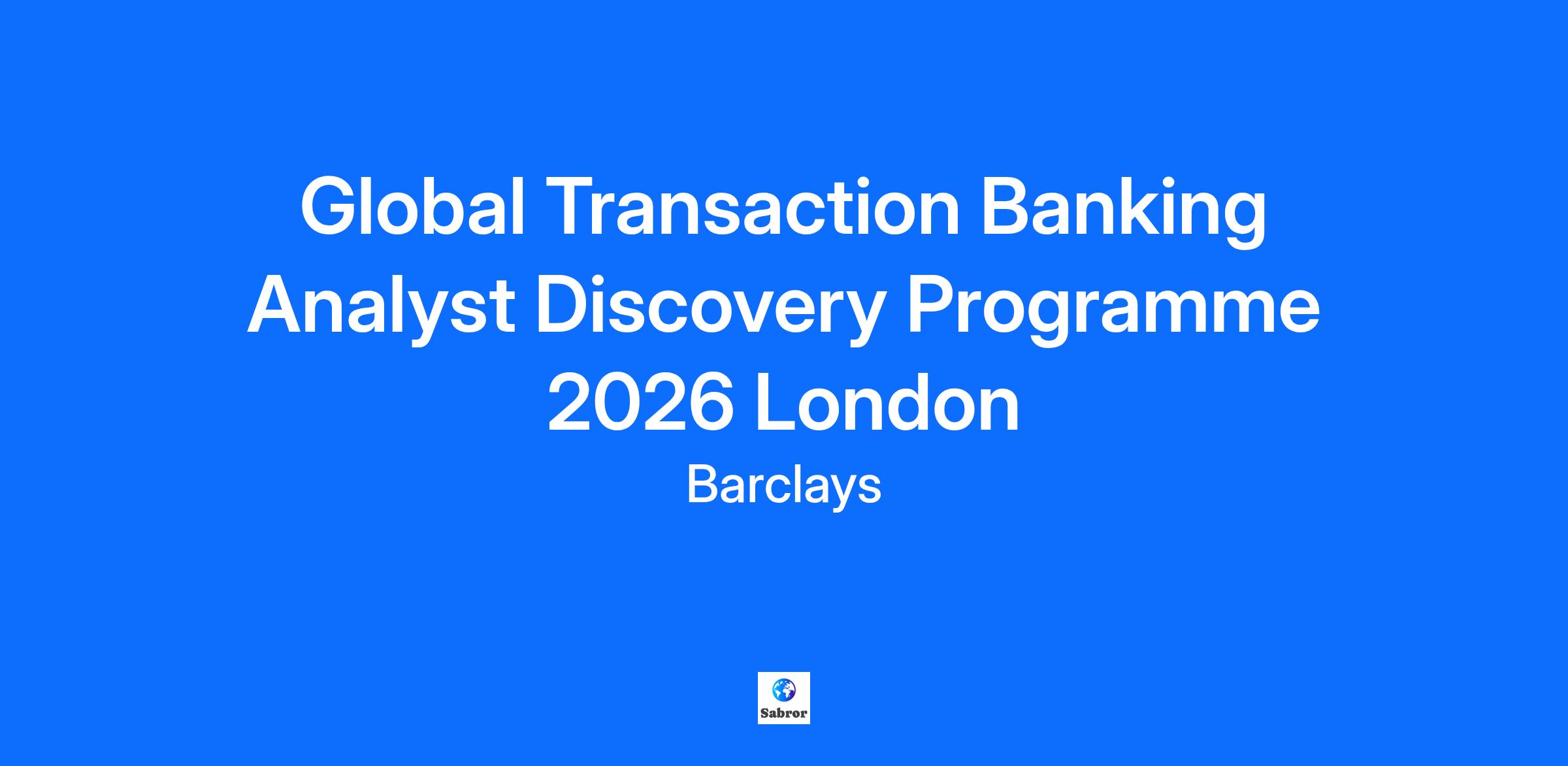 Job Description The Discovery Programme is an amazing opportunity for students, who are 2 years out from graduation, to be assessed for, and to apply to join, our Summer Internships in 2027 before anyone else. It’s the chance to learn about a career at Barclays, the chance to find out a lot about the business world and to discover a bit about yourself. And, as you’ll gain a good understanding of the full selection of roles and opportunities we offer, it’s a perfect stepping stone to one of our 10-week internships. Global Transaction Banking The Global Transaction Banking division collaborates closely with the Corporate and Investment Bank, offering vital assistance to clients for their essential daily business functions. Our objective is to become the premier provider of digitally empowered working capital and transaction banking solutions to clients both domestically and globally. The division is made up of various expert teams, each specialising in payments services, control, change, data, customer experience, and digital initiatives. What you can expect Programme Dates: April 14th – 15th 2026 In-person programme. Join seminars and workshops, where you’ll learn about financial services, your chosen business area, the recruitment process and Barclays as an employer. Participate in specific breakout sessions for your business area, where you'll gain insights of what you can expect from the Summer Internship in 2027. Build your understanding of the assessment process and next steps. Connect with people from across our business, including current graduates who have already made the journey that you are starting out on. Attend dedicated networking sessions with senior leaders and graduates aligned to your chosen business area. On the 2nd day of the programme, you can be assessed for the 2027 summer internship by taking part in a series of assessments. What we look for You are 2 years out from graduation. You can be studying any degree discipline. You are curious to understand how a global bank adapts in a constantly evolving environment. We are recruiting on a rolling basis, so we recommend that students apply early. Barclays does not provide sponsorship to attend the 2-day insight programme, and Barclays will also require applicants for this position to have legal right to work in the UK for the duration of the 2027 Summer Internship Programme. It is the policy of Barclays to ensure equal employment opportunity without discrimination or harassment on the basis of race, color, creed, religion, national origin, alienage or citizenship status, age, sex, sexual orientation, gender identity or expression, marital or domestic/civil partnership status, disability, protected veteran status, genetic information, or any other basis protected by law. . Our Work Experience is the combination of everything that's unique about us: our culture, our core values, our company meetings, our commitment to sustainability, our recognition programs, but most importantly, it's our people. Our employees are self-disciplined, hard working, curious, trustworthy, humble, and truthful. They make choices according to what is best for the team, they live for opportunities to collaborate and make a difference, and they make us the #1 Top Workplace in the area.