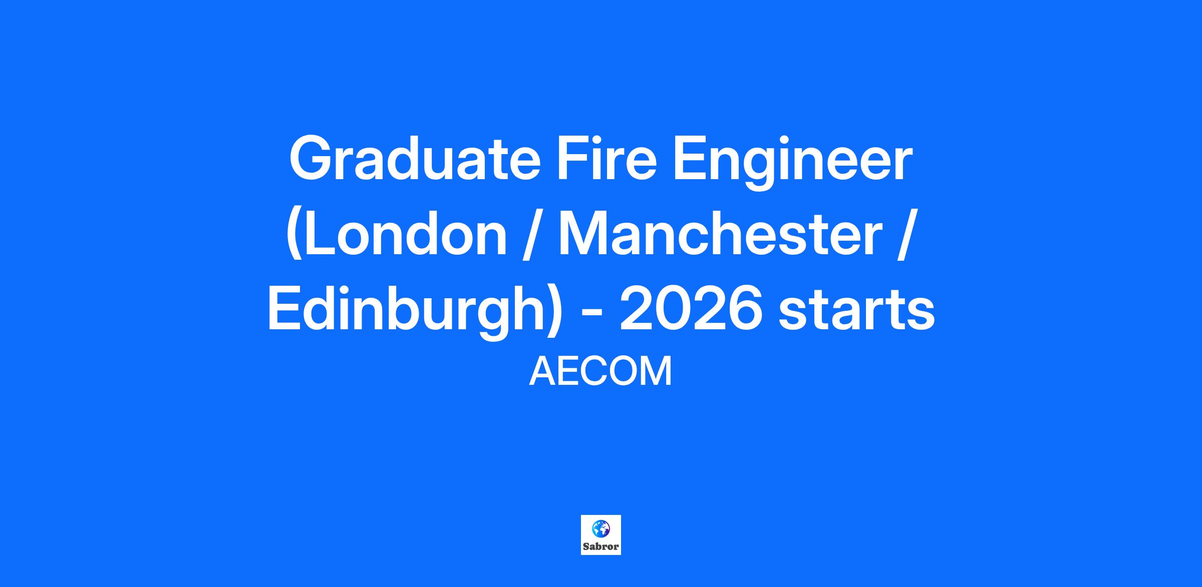Company DescriptionWork with Us. Change the World.At AECOM, we're delivering a better world. Whether improving your commute, keeping the lights on, providing access to clean water, or transforming skylines, our work helps people and communities thrive. We are the world's trusted infrastructure consulting firm, partnering with clients to solve the worldâs most complex challenges and build legacies for future generations.There has never been a better time to be at AECOM. With accelerating infrastructure investment worldwide, our services are in great demand. We invite you to bring your bold ideas and big dreams and become part of a global team of over 50,000 planners, designers, engineers, scientists, digital innovators, program and construction managers and other professionals delivering projects that create a positive and tangible impact around the world.We're one global team driven by our common purpose to deliver a better world. Join us.Job DescriptionLeading-edge thinking about the form and performance of buildings underpins AECOM’s position as a global leader in the skilful design of sustainable, elegant, and cost-effective buildings. To maximise operational performance, create commercially viable spaces, and deliver holistic and sustainable design solutions, our work combines the expertise of some of the world’s leading building scientists and engineers including our specialist Fire Engineering team.As a Graduate Fire Engineer at AECOM, you will play a vital role in shaping the fire safety performance of buildings from the very earliest stages of design. You will work at the heart of multidisciplinary project teams, helping architects, structural engineers, and other specialists understand how their design decisions influence the fire safety strategy and overall building performance.In this role, you will have the opportunity to apply advanced analytical methods to real-world projects. This may include undertaking detailed assessments using Computational Fluid Dynamics (CFD), smoke movement and smoke layer calculations, evacuation modelling, and other specialist fire engineering tools to inform safe, efficient, and innovative design solutions.As projects evolve, you will support senior fire engineers in providing clear, actionable technical advice to project teams. This includes identifying non-compliant elements, evaluating mitigation measures, and helping to develop robust fire safety strategies that align with Building Regulations, industry standards, and project-specific requirements. You will join design workshops and client meetings under the guidance of experienced engineers, contributing to design development while building your own technical and professional capability.At AECOM, you will be part of a high-performing global network of fire engineering professionals, giving you exposure to diverse project types from commercial and residential schemes to major international developments. You will be supported through structured training, mentorship, and opportunities for professional registration, enabling you to grow into a confident, well-rounded fire engineer ready to make a meaningful impact on the built environment.Examples of projects delivered by our Fire Engineering team include:Salisbury Square Development, London – Development of the fire strategy for a new development comprising Court Building, Police Headquarters, Office Building, and redevelopment of a Listed Building into a Public House.Marine Lakes Event Centre, Southport – Fire engineering services for a new theatre and exhibition centre, including developing a detailed evacuation strategy and comprehensive CFD smoke modelling.77 Marsh Wall, Canary Wharf, London – Development of the fire strategy for a new 180m tall mixed-use residential building featuring residential apartments, hotel facilities, commercial areas spaces, residents' gym and spa facilities plus basement car parking.Sussex Surgery Centre, Eastbourne – Development of the fire strategy for the new surgery centre at Eastbourne District General Hospital, including operating theatres, first- and second-stage recovery areas, and the new endoscopy unit1 Liverpool Street, London – Development of an 11-storey office building with ground floor retail units constructed around an Crossrail ventilation shaft and above Liverpool Street London Underground Station.Shakespeare Theatre, Prescot – Development of a new performing arts space built around a new, 470-seat timber framed theatre inspired by Jacobean design.McArthurGlen, Nationwide – Development of retrospective fire strategies at two of McArthurGlen's UK Designer Outlet sites in York and Bridgend, which include both retail and food and beverage units provided over large, active commercial sites.Key ResponsibilitiesAssist in producing designs, calculations, sketches, diagrams, fire strategy drawings, and fire strategy reports under the guidance of senior engineers.Support the collection, analysis, and documentation of engineering data to inform project decisions.Use engineering software and digital tools to solve basic technical problems and contribute to design development.Present technical work clearly and professionally using appropriate media, with support from the project team.Deliver tasks in line with agreed budgets, deadlines, and quality standards.Take ownership of your personal and professional development, proactively seeking opportunities to expand your skills and knowledge.QualificationsBachelor’s degree (minimum 2:1 or equivalent) in Fire Engineering or a related discipline such as Structural, Mechanical, Civil, Aeronautical, or Aerospace Engineering from an accredited university.A Master’s degree in Fire Engineering or a closely related subject is advantageous.Strong numerical skills, with the ability to analyse and interpret technical information.Excellent written and verbal communication skills.High attention to detail and a commitment to producing accurate work.Fle