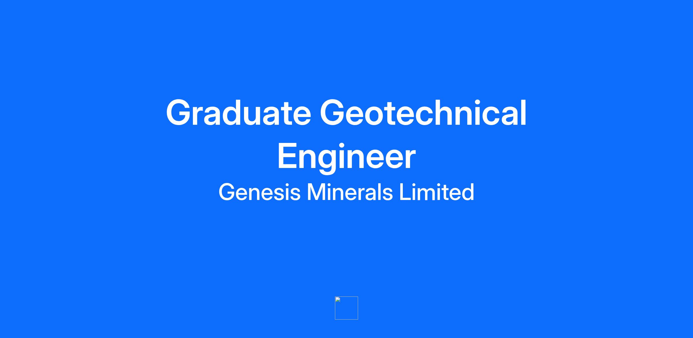 Do you ASPIRE to join a new growth story in West Australian gold? Join us! Accountable. Sustainable. People First. Integrity. Results. Empower. Job Title Graduate Geotechnical Engineer Job Roster Lifestyle friendly 8 days on; 6 days off roster FIFO from Perth to Leonora or DIDO Competitive remuneration Job Summary We are now seeking a Graduate Geotechnical Engineer to support our Leonora underground and open pit operations, contributing to critical geotechnical functions that enable safe, efficient, and compliant mining activities. Job Statement Kickstart your geotechnical engineering career in our 2-year Graduate Program - gain hands-on experience, make a real impact, and grow with Genesis Minerals. Lifestyle friendly 8 days on; 6 days off roster FIFO from Perth to Leonora or DIDO Competitive remuneration We are now seeking a Graduate Geotechnical Engineer to support our Leonora underground and open pit operations, contributing to critical geotechnical functions that enable safe, efficient, and compliant mining activities. The Opportunity: Assist in geotechnical monitoring and analysis for underground and open pit operations Conduct site inspections, core logging, slope stability assessments, and geotechnical mapping Support the design, implementation, and maintenance of ground control and mine support systems Prepare geotechnical reports, models, and documentation using industry-standard software Participate in the preparation of mine plans and contribute to operational decision-making based on geotechnical data Support continuous improvement initiatives within the technical services team Learn from experienced geotechnical engineers and rotate through key geotechnical functions as part of the graduate development pathway We’re excited to hear from you if you have: Recently graduated with a degree in Geotechnical, Mining or Civil Engineering A willingness to learn and enthusiasm for developing technical capability across both underground and open pit survey functions Effective communication skills and the ability to work collaboratively within multidisciplinary teams What you can expect from us: A caring and supportive culture: join a team that truly cares about your growth and success. All-Inclusive Stay: we provide all accommodation, meals, and flights to and from Perth, as well as all necessary personal protective equipment (PPE). Community and Wellness: relax in our fantastic village with excellent facilities, including an onsite gym, pool, recreation room, BBQ area, plus free Wi-Fi! Competitive Compensation Join the Genesis of a new growth story in West Australian Gold. Are you ready to be part of a dynamic and ambitious team at a growing ASX-listed gold house? At Genesis, we're dedicated to realising our vision of becoming The Trusted Australian Gold Miner, delivering high-quality, progressive operations with a target of +400koz annually. Genesis offers unparalleled opportunities for growth and innovation in the prolific Leonora and Laverton region of Western Australia. Our team lives by the ASPIRE Values – Accountable. Sustainable. People First. Integrity. Results. Empower Does this sound like you? If so, we’d love to hear from you. Submit your applications To be considered for this role, please submit a brief covering letter and CV by following the APPLY NOW prompts. We encourage applicants from a range of backgrounds and experience to apply. Further information about the Company is available on the website; www.genesisminerals.com.au Shortlisting for this role will commence immediately. Please apply now. Please note: We respectfully request that there are no approaches from recruitment agencies in relation to this role. We will be accepting applications and enquiries from direct applicants only. Genesis Minerals is a new and growing ASX-listed gold house, 100% focused in the Leonora District of Western Australia. We have the assets and people in place to achieve our vision who value honesty and integrity, doing every job safely and working collaboratively as part of a team. We look forward to you joining us. Genesis Minerals is a growing organisation where you can expect to be part of an inclusive and rewarding work environment where your contribution is acknowledged and recognised. Please introduce yourself to our recruiters and we'll get in touch if there's a role that seems like a good match.