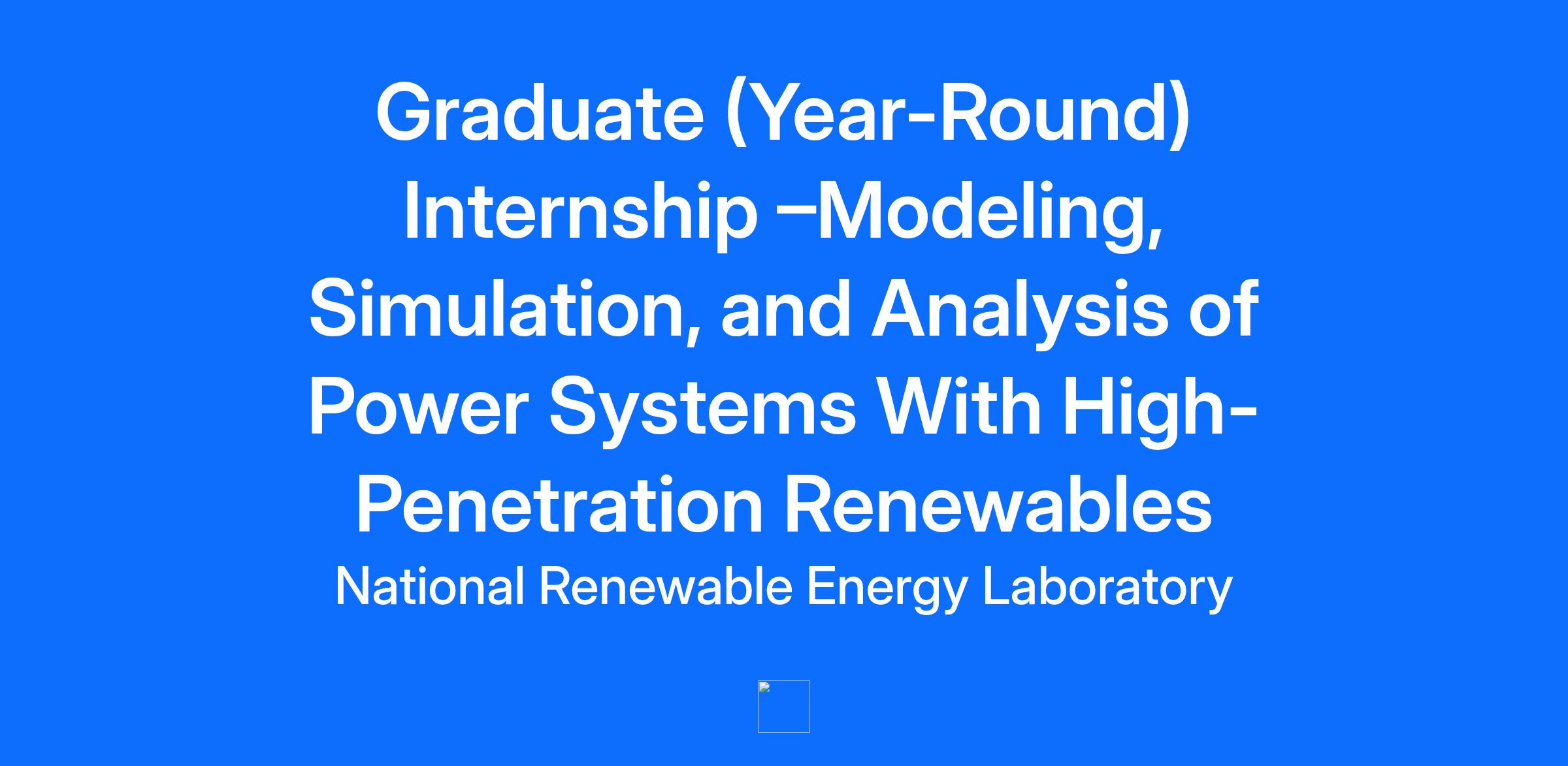 Posting Title Graduate (Year-Round) Internship –Modeling, Simulation, and Analysis of Power Systems With High-Penetration Renewables . Location CO - Golden . Position Type Intern (Fixed Term) . Hours Per Week 40 . Working at NREL NREL is located at the foothills of the Rocky Mountains in Golden, Colorado is the nation's primary laboratory for energy systems research and development. Join NREL, where world-class scientists, engineers, and experts are accelerating energy innovation through breakthrough research and systems integration. From our mission to our collaborative culture, NREL stands out in the research community for its commitment to an affordable and secure energy future. Spanning foundational science to applied systems engineering and analysis, we focus on solving complex challenges to deliver advanced, secure, reliable, and cost-effective energy solutions. Our work helps strengthen U.S. industries, support job creation, and promote national economic growth. At NREL, you’ll find a mission-driven environment supported by state-of-the-art facilities, multidisciplinary research teams, and strong collaborations with industry, academia, and other national laboratories. We offer robust professional development opportunities, and a competitive benefits package designed to support your career and well-being. Job Description This Grid Automation and Controls group at NREL focuses on conducting research projects to improve power systems operations. We develop cutting edge solutions and work closely with industry and utility partners to enhance grid reliability, resilience, and security. Our team is looking for a graduate level intern who has solid background on power system modeling, simulation, optimization and control. An ideal candidate is expected to have a good knowledge of renewable dynamic modeling or power market optimization. This will be a 3-month opportunity with the possibility to extend to 12-months. To learn more about the work this team does, please click here Power Systems Operations and Controls | Grid Modernization | NREL. The intern will focus on tackling the renewable integration challenges in inverter-dominated power systems. The preferred candidate would be working on Developing inverter-based resource especially adjustable speed pumped storage hydro models in commercial software. Conducting renewable integration studies for understanding the new technologies impact on grid stability or grid services. Contributing and/or leading the writing of research papers and working closely with NREL researchers and deliver high-impact work. . Basic Qualifications Minimum of a 3.0 cumulative grade point average. Undergraduate: Must be enrolled as a full-time student in a bachelor’s degree program from an accredited institution. Post Undergraduate: Earned a bachelor’s degree within the past 12 months. Eligible for an internship period of up to one year. Graduate: Must be enrolled as a full-time student in a master’s degree program from an accredited institution. Post Graduate: Earned a master’s degree within the past 12 months. Eligible for an internship period of up to one year. Graduate + PhD: Completed master’s degree and enrolled as PhD student from an accredited institution. Please Note: • Applicants are responsible for uploading official or unofficial school transcripts, as part of the application process. • If selected for position, a letter of recommendation will be required as part of the hiring process. • Must meet educational requirements prior to employment start date. * Must meet educational requirements prior to employment start date. Additional Required Qualifications Currently enrolled in or recently graduated from a Master’s program, or currently enrolled in a Ph.D. program in Power Engineering, Electrical Engineering, or a related field Demonstrated knowledge or experience in power system modeling, dynamics, and control. Experience in modeling, design, and analysis of inverter-based resources such as solar, wind and adjustable speed pumped hydro, etc. Proficiency in commercial power system simulation software such as PSS/E, PSLF, PSCAD and Powertech tools. Self-motivated, having good problem-solving capability, and ability to follow project timelines Excellent written and verbal communication skills. Preferred Qualifications Experience in developing user-defined models in PSS/E and/or PSLF. Good programming skills . Job Application Submission Window The anticipated closing window for application submission is up to 30 days and may be extended as needed. Annual Salary Range (based on full-time 40 hours per week) Job Profile: / Annual Salary Range: $50,200 - $80,300 NREL takes into consideration a candidate’s education, training, and experience, expected quality and quantity of work, required travel (if any), external market and internal value, including seniority and merit systems, and internal pay alignment when determining the salary level for potential new employees. In compliance with the Colorado Equal Pay for Equal Work Act, a potential new employee’s salary history will not be used in compensation decisions. Benefits Summary Benefits include medical, dental, and vision insurance; 403(b) Employee Savings Plan with employer match*; and sick leave (where required by law). NREL employees may be eligible for, but are not guaranteed, performance-, merit-, and achievement- based awards that include a monetary component. Some positions may be eligible for relocation expense reimbursement. Internships projected to be less than 20 hours per week are not eligible for medical, dental, or vision benefits. * Based on eligibility rules Badging Requirement NREL is subject to Department of Energy (DOE) access restrictions. All employees must also be able to obtain and maintain a federal Personal Identity Verification (PIV) card as required by Homeland Security Presidential Directive 12 (HSPD-12), which includes a favorable background investigati