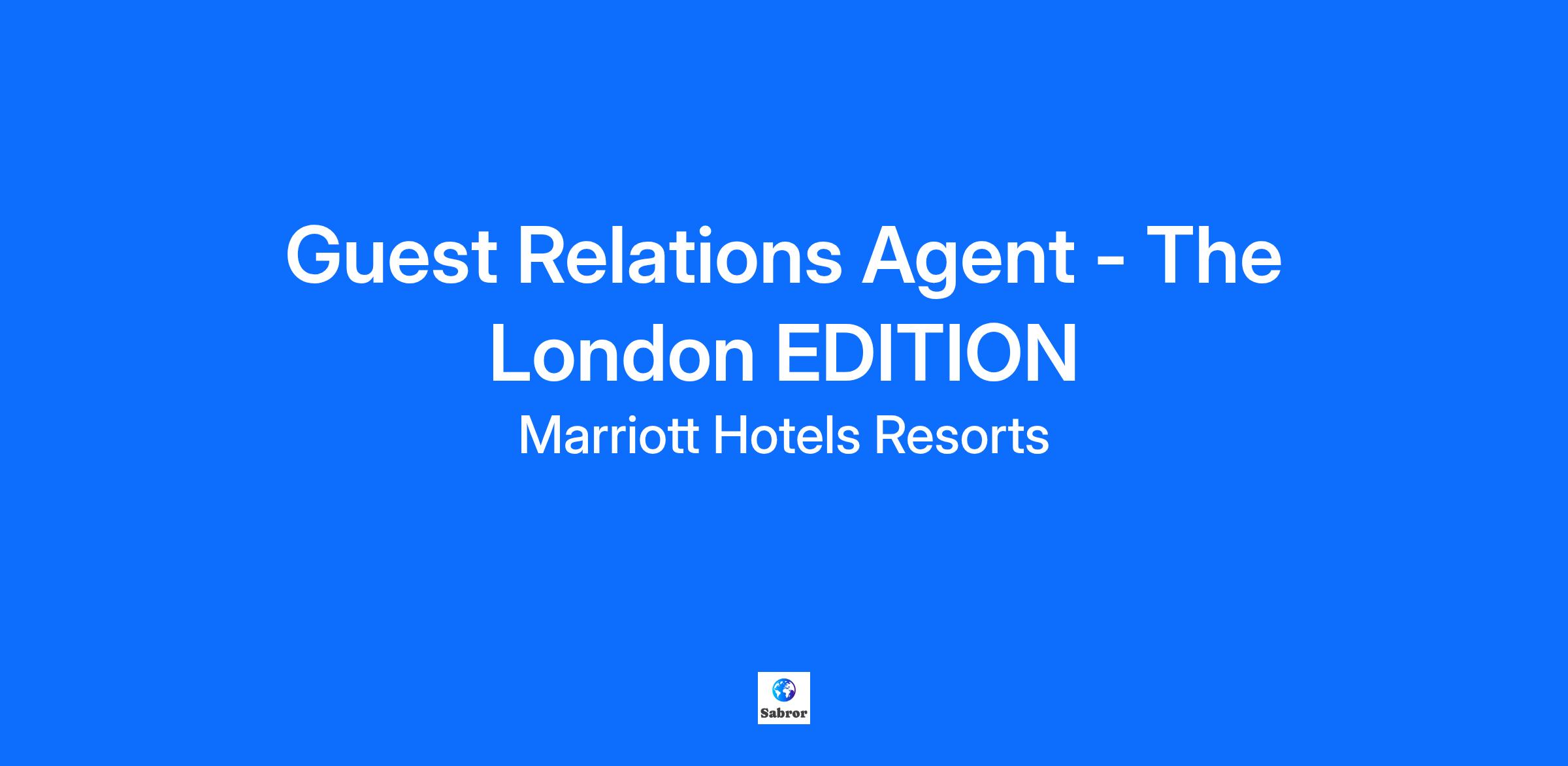 DescriptionThe London EDITION is looking for its next Guest Relations Agent!
