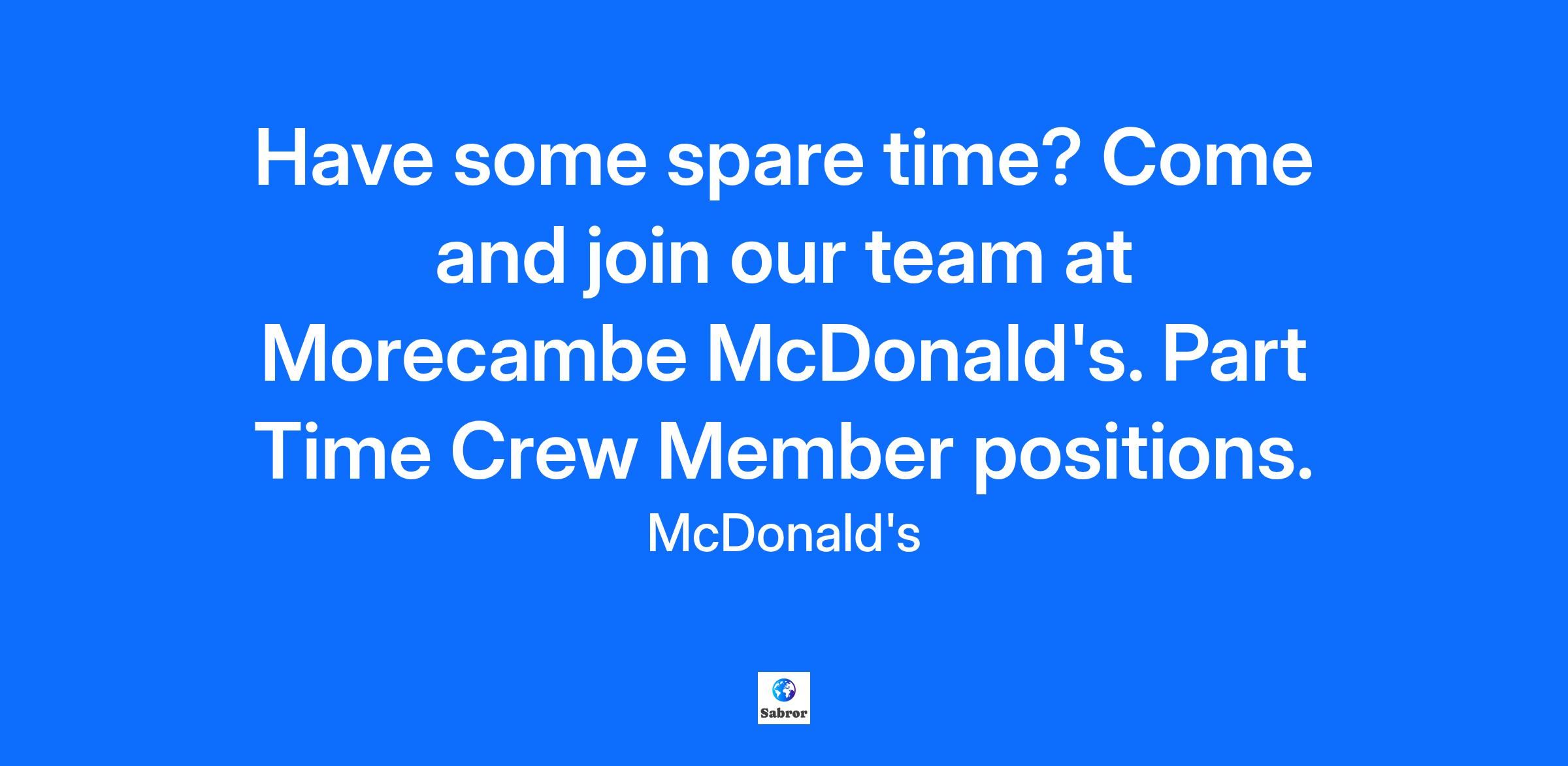 Have some spare time? Come and join our team at Morecambe McDonald's. Part Time Crew Member positions.