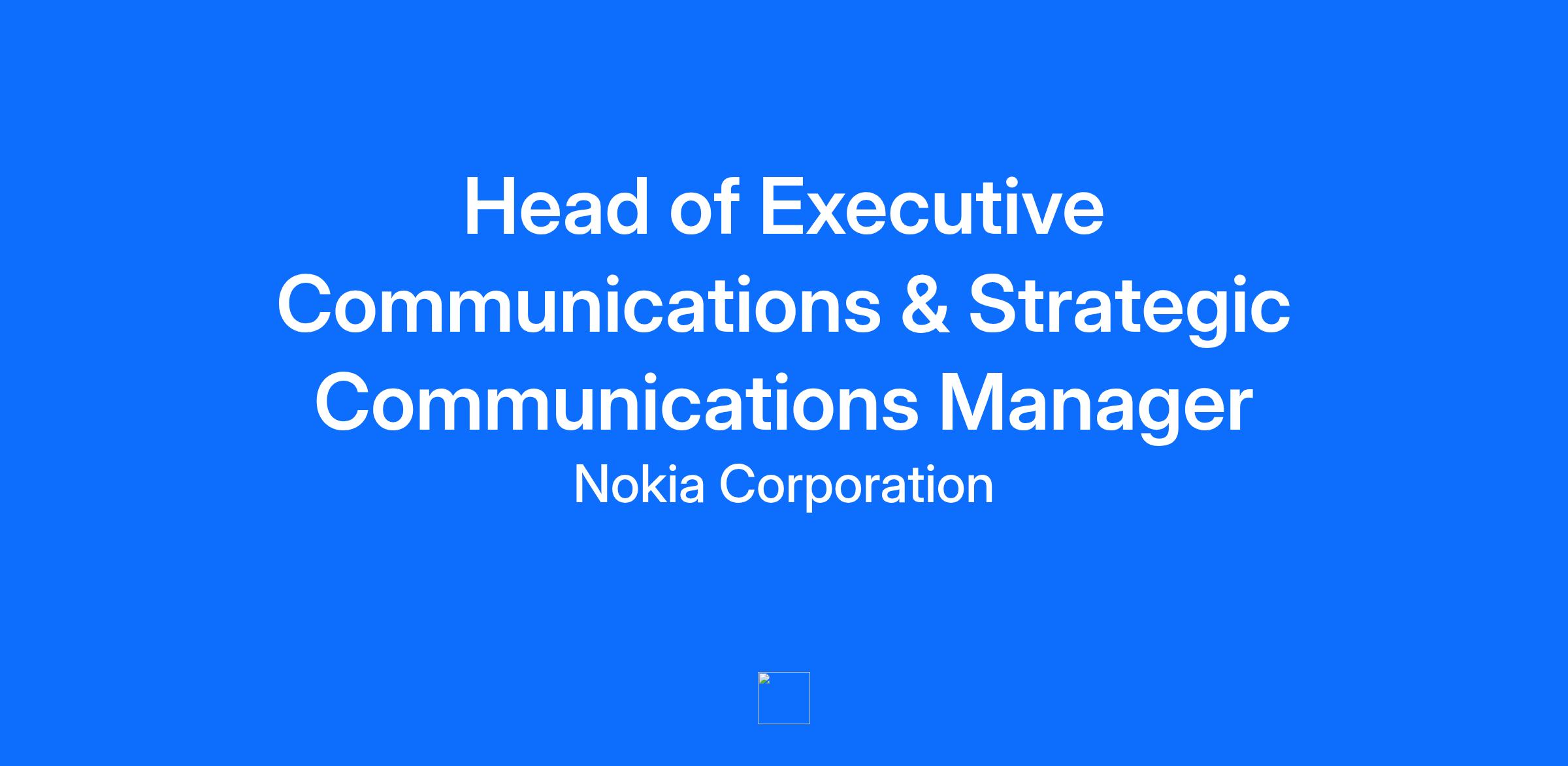 Operating at the intersection of leadership communications, corporate narrative, strategic planning and Nokia-wide messaging alignment, this role ensures that Nokia’s most senior leaders deliver clear, compelling and consistent messages to employees, customers, partners, analysts, media and broader stakeholders. The role leads the Executive Communications function, which is currently hosted within Strategic Communications, and plays a key role in developing Nokia’s corporate message system, major moment planning, and communications governance. This leader works closely with Strategic Communications, Internal Communications, Media, Digital Channels, Brand, Content, Analyst Relations, Field and Partner Marketing, Business Groups and Core Functions to deliver integrated, enterprise-level communications impact. The ideal candidate brings deep expertise in leadership communications, strategic planning, storytelling, and compelling executive communications.