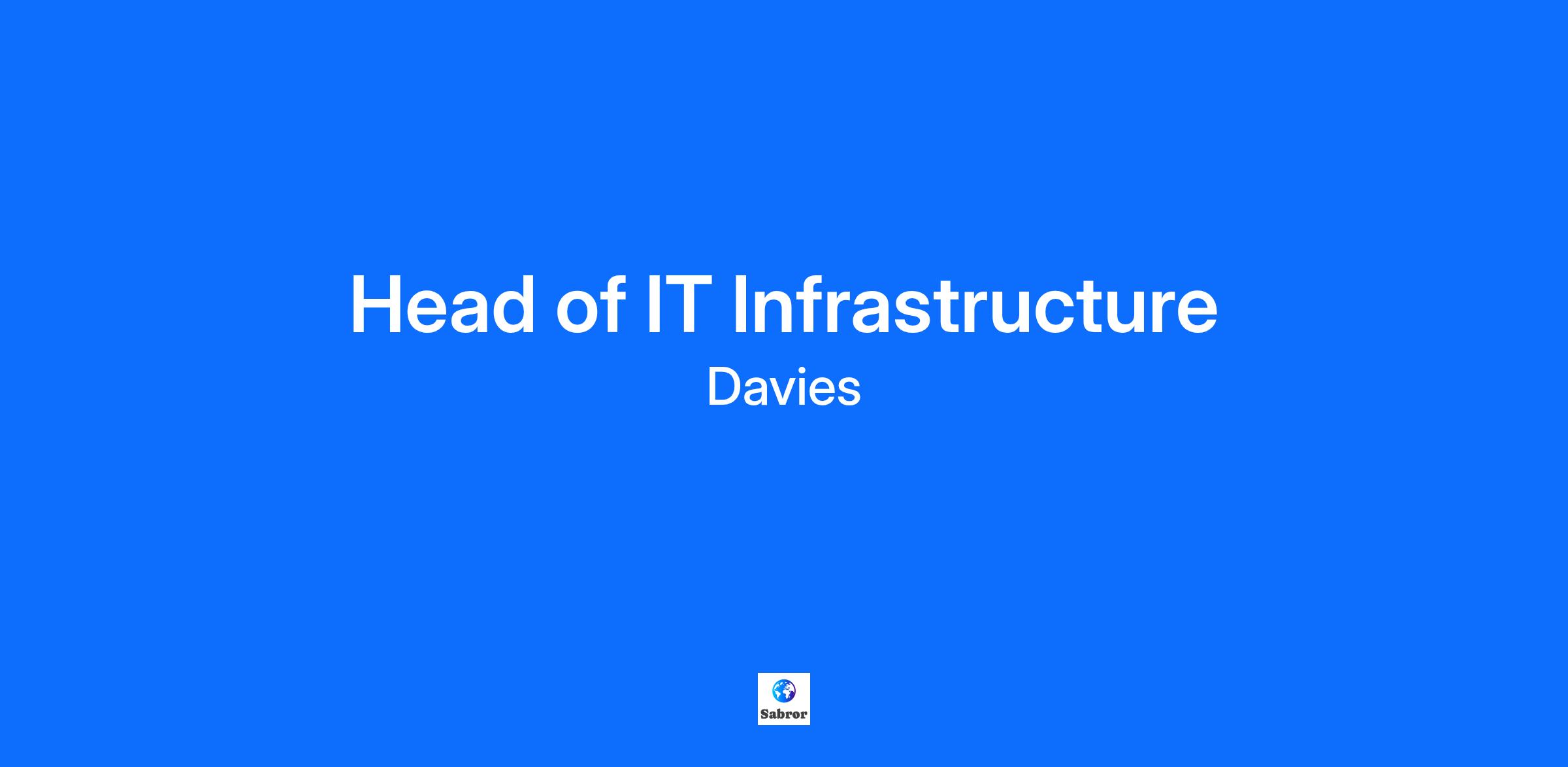 Head of IT Infrastructure Department: IT Employment Type: Permanent - Full Time Location: London UK Reporting To: Head of Client IT Services and InfoSec Description Lead the development and execution of IT infrastructure strategies, ensuring the delivery of secure, scalable, and business-aligned technology services. Provide expert 3rd line technical support for Asta Group and its customers, addressing BAU issues, managing IT resilience, and overseeing capacity planning. Cultivate strong client relationships and ensure high-level changes adhere to change control procedures. Demonstrate the ability to lead and develop a high-performing IT team, step in for the Head of Client IT Services and InfoSec when required and collaborate effectively across business entities. Your New Role Strategic Planning and Leadership: Lead the development and implementation of IT infrastructure strategies that align with the company's goals and objectives. This includes overseeing the design, deployment, and management of robust and scalable IT systems. Innovation and Technology Advancement: Monitor developments in technology and industry trends. Assess and implement new technologies with the objective of enhancing efficiency, security, and the performance of IT infrastructure. Team Development and Management: Lead a high-performing IT infrastructure team. Foster a culture of continuous learning and professional development, ensuring the team is equipped with the latest skills and knowledge. Client and Vendor Management: Build and sustain effective partnerships with Asta’s clients, IT representatives, and prospective clients. Collaborate with external vendors and internal stakeholders to uphold Asta’s rigorous standards. Security and Compliance: Ensure the IT infrastructure meets all security and compliance requirements. Collaborate with wider IT team to develop and implement policies and procedures to protect the company's data and systems from threats and vulnerabilities. Project Management: Work with project manager to oversee the planning, execution, and completion of IT infrastructure projects. Provide technical planning structure to ensure projects are delivered on time, within budget, and meet the desired outcomes. Disaster Recovery and Business Continuity: Develop and maintain disaster recovery and business continuity plans including playbooks. Ensure the IT infrastructure can quickly recover from disruptions and continue to support business operations. What You'll Bring to the Role Strong understanding of enterprise IT infrastructure (networks, servers, cloud, storage, virtualisation). Cybersecurity principles and best practices Disaster recovery, business continuity, and high availability Strong problem-solving and decision-making abilities Excellent client management skills, dealing with SLAs and high expectations. Experience in regulated industry Benefits Davies are committed to being a diverse and inclusive workplace. We welcome candidates of all genders, gender identity and expression, neurodiversity, sexual orientation, disability, physical appearance, body size, race, age, nationality, and belief (or lack thereof). Join us and enjoy our ever-evolving benefits, including but not limited to: Reward platform – discounts for over 800 retailers 25 days holiday (rising with service) Well-being centre Recognition programme Family friendly employer Pension - company contribution at 10% Life Assurance (10 x basic salary) Private medical with an annual health check Development, training, and professional qualification Employee volunteering programme