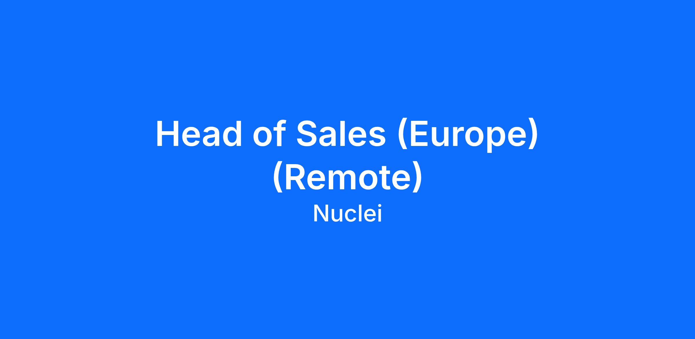 Head of Sales (Europe) (Remote)