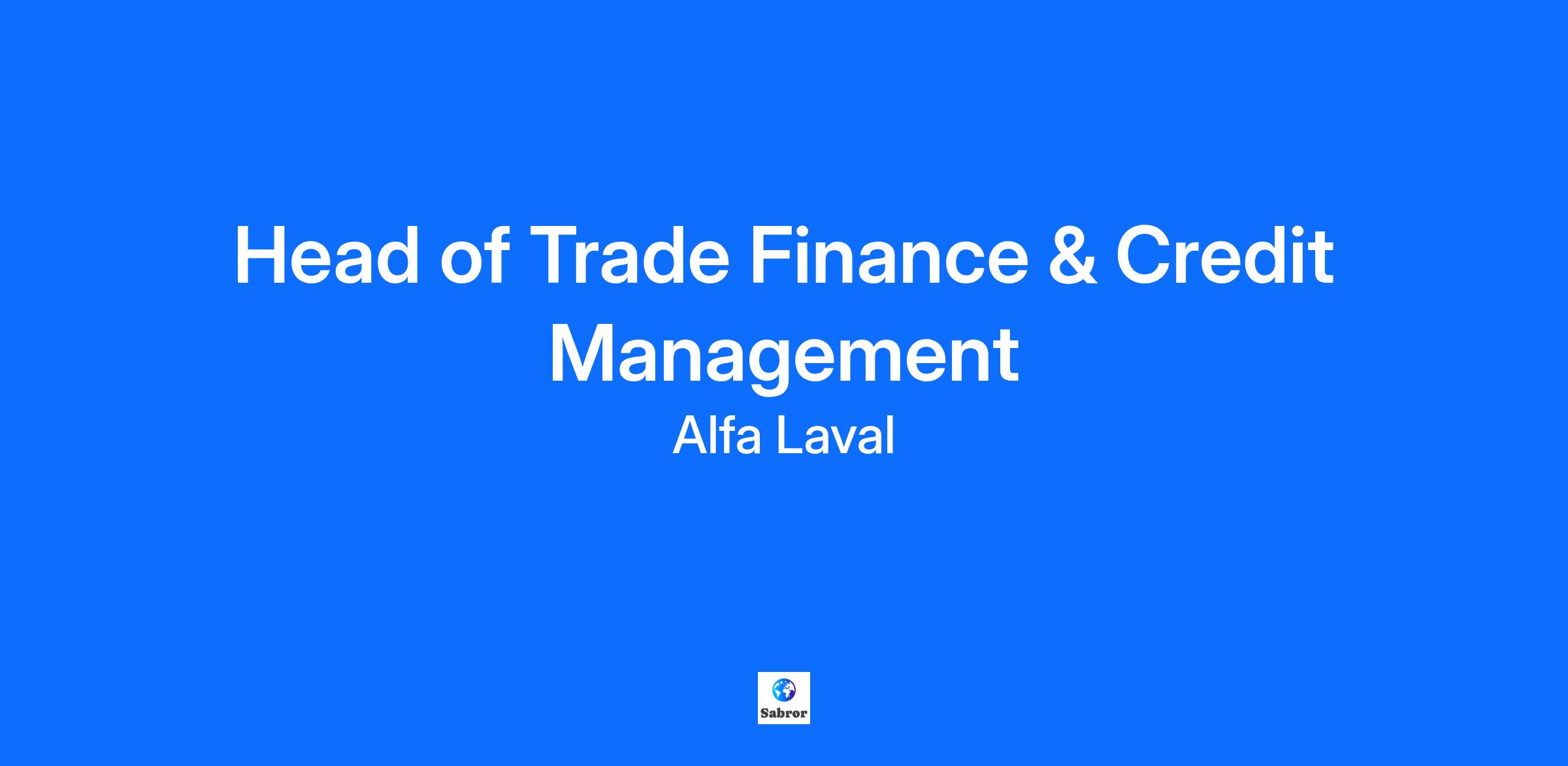 As our current Head of Trade Finance moves on within the organisation, we are seeking a strategic thinker with a passion for trade finance, credit risk management, and team leadership. About the job Alfa Laval seeks a dynamic and experienced professional to lead and develop our Trade Finance and Credit Management activities as part of Group Treasury organization. The Head of Trade Finance and Credit Management will play a critical role in promoting and optimizing global trade finance operations, managing credit risk, and supporting the company’s strategic objectives. This position reports directly to the VP, Head of Group Treasury, has four direct reports, and collaborates closely with stakeholders across the global organization as well as partners in the finance and insurance markets. This role can be based in Stockholm, Lund or Copenhagen . Frequent visits to the headquarters in Lund are required. Responsibilities: Strategic Leadership: Develop and implement strategies for trade finance and credit management, ensuring alignment with Alfa Laval’s overall financial and business goals, and provide high-level advice and recommendations to operational units and management. Trade Finance Oversight: Manage all aspects of trade finance, including letters of credit, guarantees, export/import financing, working capital solutions, and negotiate agreements with banks, credit insurers, and export credit agencies. Credit Risk Management: Secure robust credit policies, procedures, and controls; assess and monitor the creditworthiness of customers and partners to optimize credit exposure and mitigate risks. Team & Stakeholder Management: Lead, mentor, and develop the Trade Finance and Credit Management teams, fostering a culture of high performance and continuous improvement, while collaborating with business units, sales teams, and external financial institutions to support commercial objectives. Reporting, Process Optimization & Compliance: Ensure accurate reporting and analysis of trade finance activities and credit exposures, drive process improvements and digitalization initiatives, and maintain compliance with internal policies, regulatory requirements, and best practices. What you know 5+ years’ experience in trade finance, credit management, or treasury roles, preferably in multinational settings Minimum Bachelor’s degree in Finance, Economics, Business Administration, or related field (legal competence is a plus) Proven leadership and people management abilities Strong analytical, problem-solving, and communication skills Effective in fast-paced, international, and cross-functional environments Skilled at building relationships with internal and external stakeholders Fluent in English; Scandinavian language skills are a plus What´s in it for you An opportunity to shape Alfa Laval’s global trade finance and credit management strategy Engagement within a collaborative, high-performing Group Treasury team Professional development and career growth opportunities within a global leader in its field For more information, please contact, VP Head of Treasury, Henrik Welch, henrik.welch@alfalaval.com VP Human Resources, Anne Isachsen, anne.isachsen@alfalaval.com For union information in Sweden, please contact: Johan Ranhög, Akademikerna, johan.ranhog@alfalaval.com Stefan Sandell, Ledarna, stefan.sandell@alfalaval.com Monica Anderberg, Unionen, monica.anderberg@alfalaval.com Please send your application and resume through the link above no later than 30 of December 2025 We are conducting a continuous review of received applications. We do not accept applications via email, due to General Data Protection Regulation (GDPR). We care about diversity, inclusion, and equity in our recruitment processes. We also believe behavioural traits can provide important insights into a candidate's fit to a role. To help us achieve this we apply Pymetrics assessments, and upon application you will be invited to play the assessment games. We look forward to hearing from you soon! Every day, we get opportunities to make a positive impact – on our colleagues, partners, customers and society. Together, we’re pioneering the solutions of the future and unlocking the full potential of precious resources. Trusted to act on initiative, we challenge conventional thinking to develop world-leading technologies that inspire progress in vital areas, including energy, food, water and shipping. As we push forward, the innovative, open spirit that fuels our 140-year-old start-up culture and rapid growth also drives our personal growth. So, as we shape a more resourceful, less wasteful world, we build our careers too. Meet our dedicated people who always go the extra mile Alfa Laval Career Site Or sign up for Job Alerts to stay in touch Sign up for Job Alerts