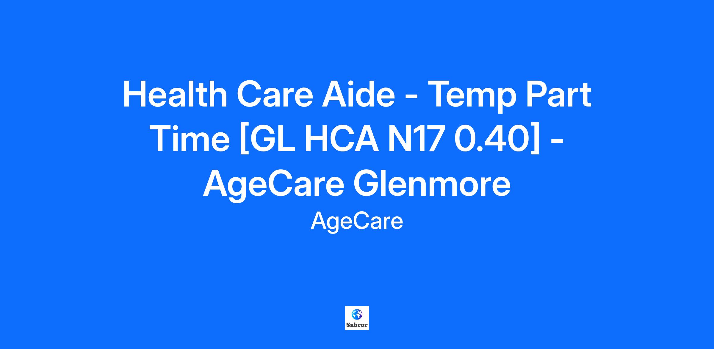 Health Care Aide - Temp Part Time [GL HCA N17 0.40] - AgeCare Glenmore
