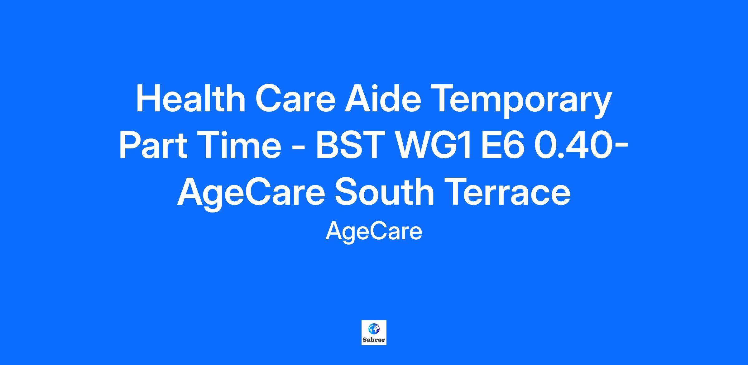 Health Care Aide Temporary Part Time - BST WG1 E6 0.40- AgeCare South Terrace