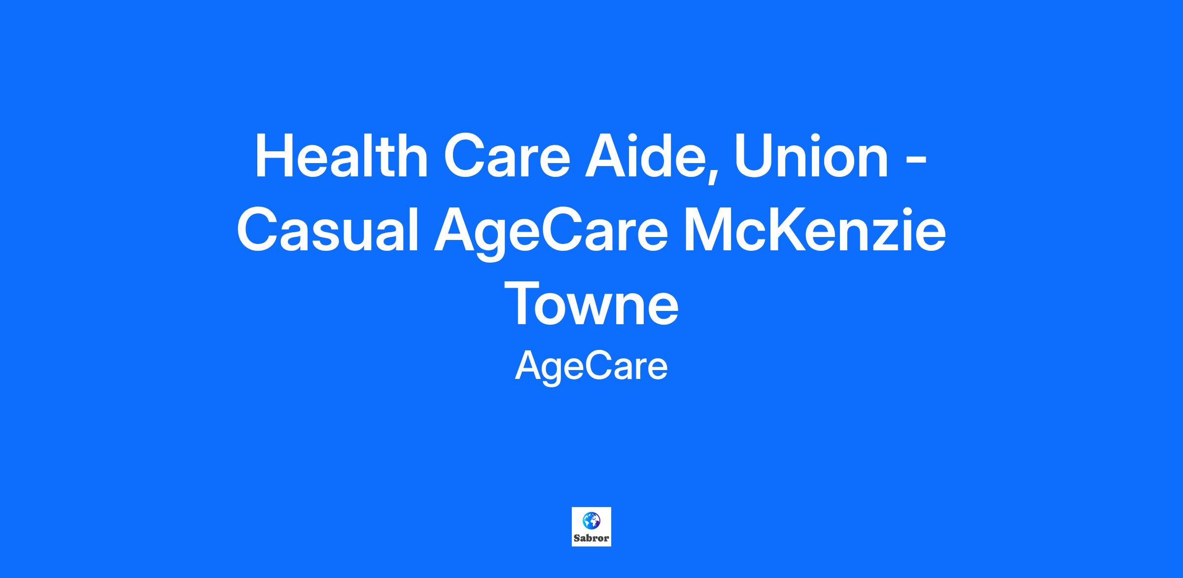 Health Care Aide, Union - Casual AgeCare McKenzie Towne