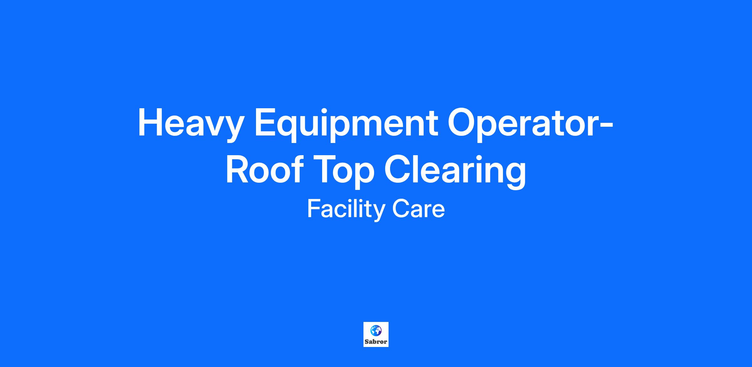 Experienced Heavy Equipment Operator – Snow Removal for Roof-Top Clearing Tractor Trailer Clearing Service