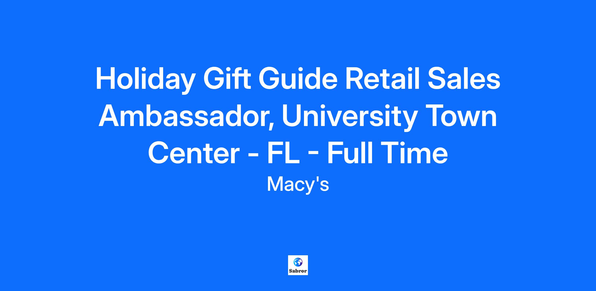 Holiday Gift Guide Retail Sales Ambassador, University Town Center - FL - Full Time