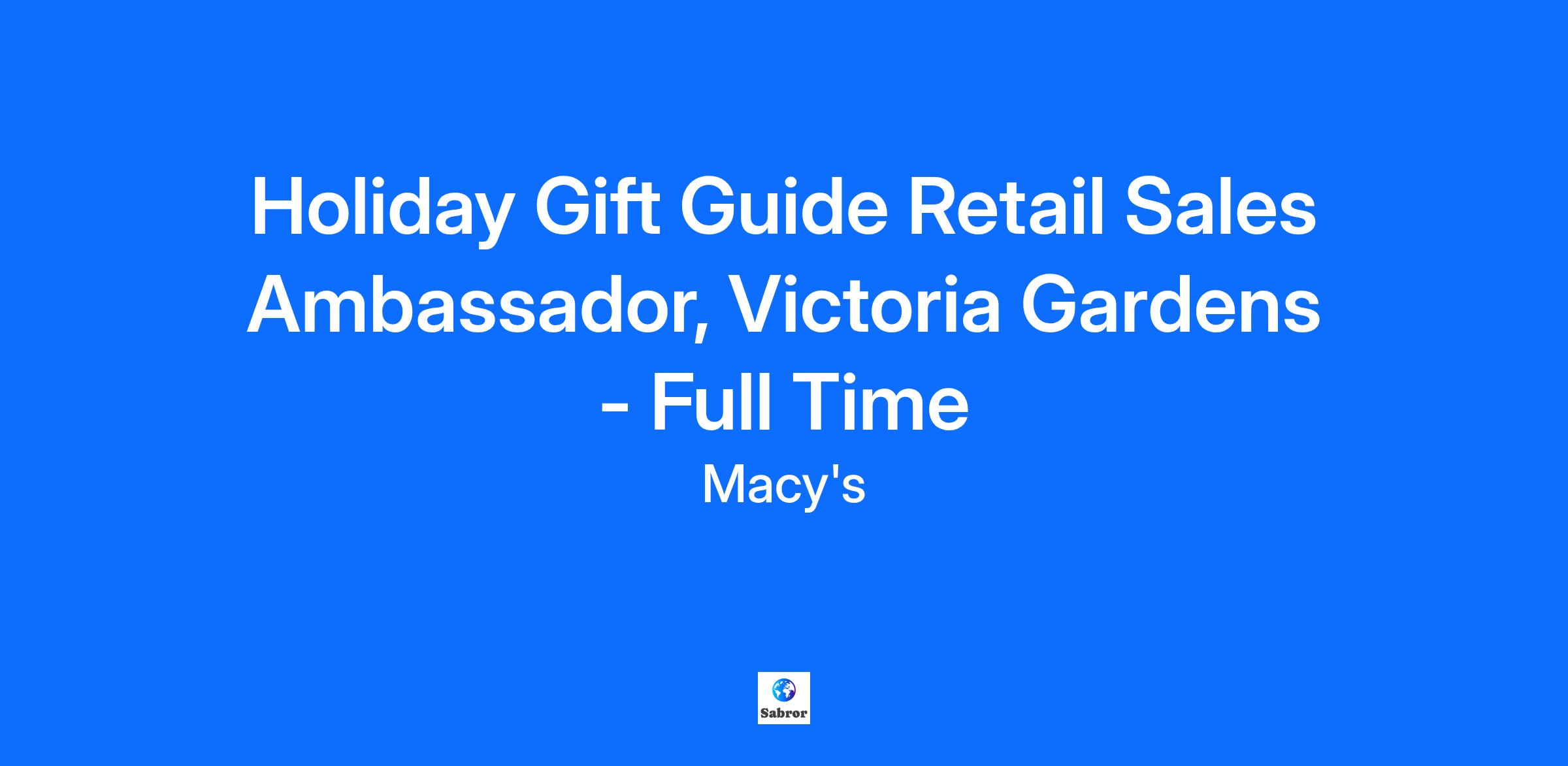 Holiday Gift Guide Retail Sales Ambassador, Victoria Gardens - Full Time