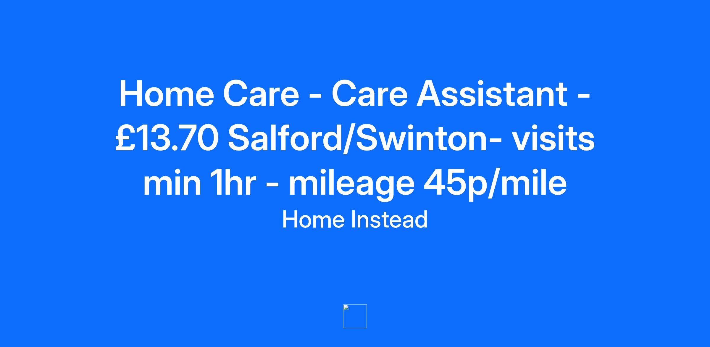 Company Description Excellent rate of pay £13.70 per hour Mileage paid at 45p/mile. Paid induction process *terms apply - Full time & Part time hours available Your birthday off - Paid Outstanding provider 2023 Award winning training and ongoing support, with genuine career development opportunities Employee assistance programme - available 24/7 Your well-being is important Home Instead – you will have free, confidential access to counselling (not limited to work-related) and legal advice. Genuine appreciation and recognition of the important work that you will undertake as a Care Professional with Home Instead. Home Instead knows that you are not “just a carer” and we value what you do. Follow us on Social Media to get a flavour of our Home Instead Salford & Worsley Team, Clients and Community projects. Search "Home Instead Salford and Worsley on Facebook or Instagram. We have been rated "Outstanding" by the Care Quality Commission in 2017 and 2023. IMPORTANT TO CONSIDER BEFORE APPLICATION - Our Care Assistants are required to work at least 2 evenings in the week and alternate weekends. Core hours are between 8am- 1pm and 4.45pm - 9.30pm, although there is potential to increase hours beyond these times. It is ESSENTIAL be a driver with access to a vehicle insured in your name with Class A Business Insurance in order to be able to fulfil our domiciliary positions If you’re looking for a profession where you can bring your caring personality to work and change lives, look no further. We are looking for Care Professionals that recognise the importance of the work that they do. We need good communicators and problem solvers with a professional approach to the important work that they do. We need people that can’t help but CARE. “Just a carer?” No such thing! Job Description Care Assistant responsibilities: Being a Care Professional is a highly rewarding career where no two days are the same! With minimum 1 hour care visits and client matching, you have the time to provide high quality, person-focused care. Duties can include: Companionship - ensuring a client enjoys regular and meaningful social interaction is an important part of your visit Personal care - supporting our clients with the essentials such as bathing, showering, dressing and grooming to keep them healthy and independent Help with everyday tasks such as; meal preparation and light housework Accompanying to appointments or shopping. It is ESSENTIAL be a driver with access to a vehicle insured in your name with Class A Business Insurance Qualifications Formal care experience is not required. Experience is also welcomed. We need you to CARE for others and be happy in YOUR career. We need you to help us to support our clients by providing the highest quality of care so that they can continue to live safe, well and as independently as possible in their own homes. We, as a company, will care for you! It is ESSENTIAL be a driver with access to a vehicle insured in your name with Class A Business Insurance. It is ESSENTIAL to have GCSE level English or equivalent. It is ESSENTIAL to be resident within Salford (non-Salford postcodes will fall into other Home Instead Office’s territories). Formal care experience is not required - we provide full training. Your passion for taking care of someone else, being friendly whilst staying professional and your references will show that you are dependable, trust-worthy and respectful. IMPORTANT TO CONSIDER BEFORE APPLICATION - Our Care Assistants are required to work at least 2 evenings and alternative weekends. Core hours are between 8am- 1pm and 4.45pm - 9.30pm, although there is potential to increase hours beyond these times. You must be over 18. Additional Information Be part of the Home Instead community and work with friendly like-minded people who share your values. Whether you already have experience in the care sector or are looking for a new career, we would love to hear from you! Click apply today or call us 0161 870 3861 to learn more. Home Instead are committed to equal opportunities and welcome a broad diversity of talent to apply. Things to consider The role will be subject to a DBS check. It is ESSENTIAL be a driver with access to a vehicle insured in your name with Class A Business Insurance. https://www.homeinstead.co.uk/salford-worsley/ for more information. Like and Follow us on Facebook/Instagram - search "Home Instead Salford" Date Advert Closes: 29 July 2024
