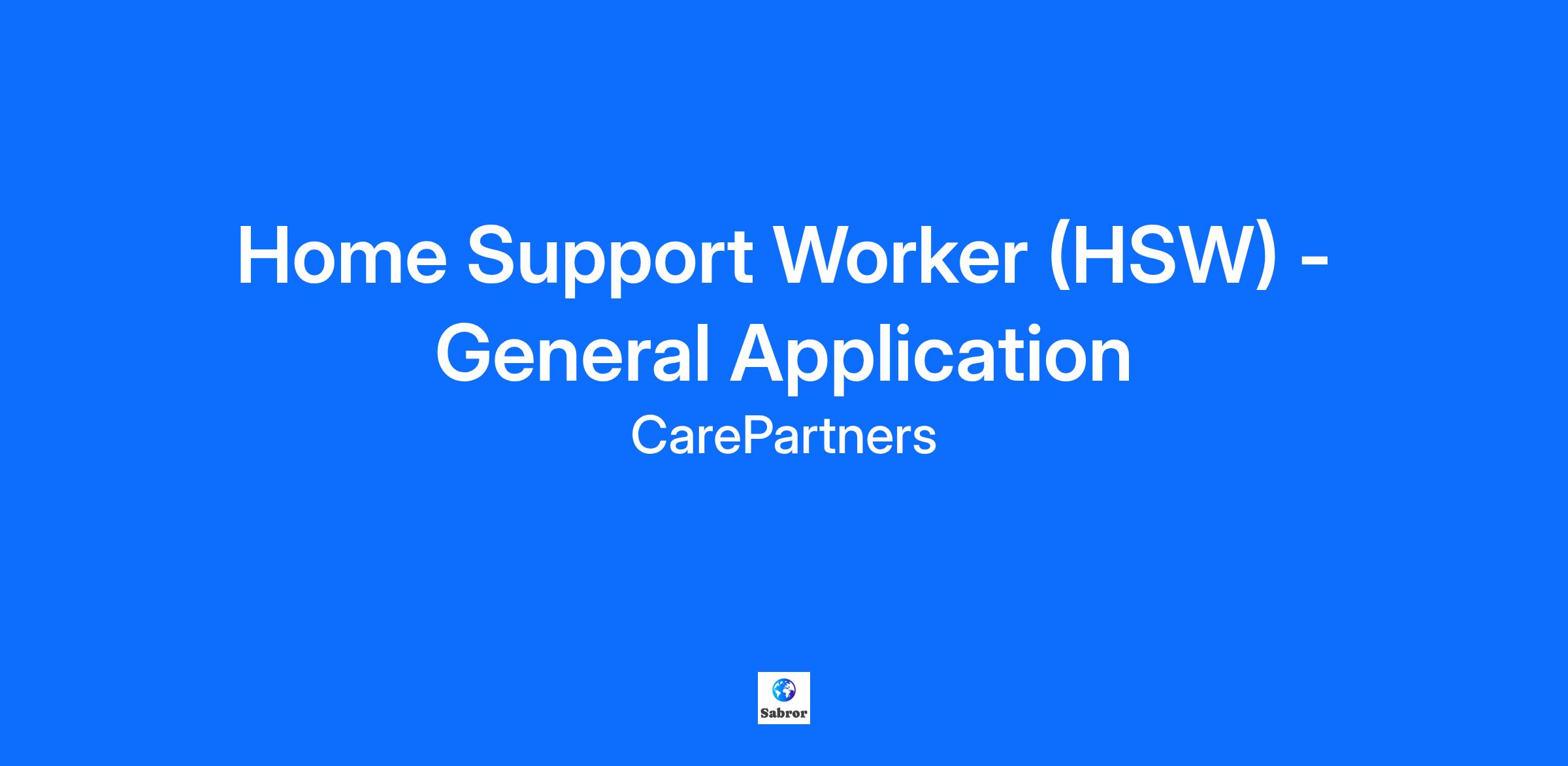 CarePartners is offering a PAID opportunity to receive training and skills needed to work as a Home Support Worker (HSW).
