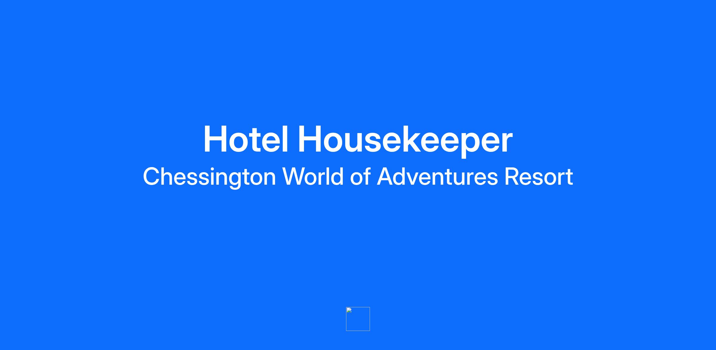 What you'll bring to the team Location: Chessington World of Adventures Resort, Leatherhead Road, Chessington, Surrey, KT9 2NE Hours: Fixed term contract to 15th November 2026 Advert closing date: 31st January 2026Please note we reserve the right to close applications early if we receive a high volume of quality applications. We would therefore recommend that you submit your application as soon as possible. COME & JOIN BRITAINS WILDEST ADVENTURE! Are you passionate about creating memorable experiences? Do you thrive in a fast-paced, fun environment? Then we want YOU to be part of our team. Leave the everyday behind and unleash your imagination as you explore a career at Chessington World of Adventures Resort, Britain’s biggest wildlife theme park. Here at Chessington World of Adventures we are gearing up for our 2026 Season and are looking for Housekeepers to join the team! Fluffy towels, immaculate rooms, and a warm and attentive service, our guests can expect nothing but excellence from the rooms you prepare. Working under the guidance of the Housekeeping Management team, you will be responsible for preparing guest bedrooms and accommodation promptly and to the highest standards. This includes clearing items left by previous guests and ensuring rooms are perfectly presented for arrivals, with fresh linen, neatly folded towels, and finishing touches such as chocolates placed on plumped pillows. This is a physically active role that requires a hands-on approach, punctuality, and strong time-management skills to ensure all tasks are completed efficiently. This seasonal position offers up to 30 hours per week, working 5 days out of 7. Flexibility is essential to meet business demands, particularly during weekends and peak holiday periods, which are key times in the leisure hospitality sector. Day to day this role will include: Changing bed linen and making beds, bunk beds, and trundle beds in line with company standards Thoroughly cleaning and sanitising all bathroom areas Clean, restock, and present tea and coffee facilities Dust and vacuum all bedroom areas Carry out additional cleaning tasks as directed by the Housekeeping Management team Vacuum corridors upon completion of bedroom cleaning Adhere to all housekeeping rules, procedures, and health and safety standards Demonstrate strong attention to detail at all times Maintain the highest standards of cleanliness and presentation Meet required productivity and efficiency targets Don’t miss out on the opportunity to be part of one of the UK’s most exciting attractions. Apply now to join our Team and make every day an adventure! Qualifications & Experience We need you to come with is the right positive attitude, enjoy working as part of a team, in a fast-paced environment, and be able to deliver jaw dropping fun to our Guests! Previous experience and a good understanding of cleanliness standards and expectations Prior experience cleaning hotel bedrooms is preferred however full training will be provided for all successful candidates Benefits A competitive hourly rate Access to Merlin benefits page with discounts on over 1000 fashion and electronic retailers, restaurants, and travel 25% discount in our on-site retail shops and restaurants 40% discount on Lego Merlin Magic Pass - 20 free tickets for you, your family, and friends to enjoy all our Merlin Attractions across the world Ongoing training and development opportunities Pay Range GBP £12.27/Hr.