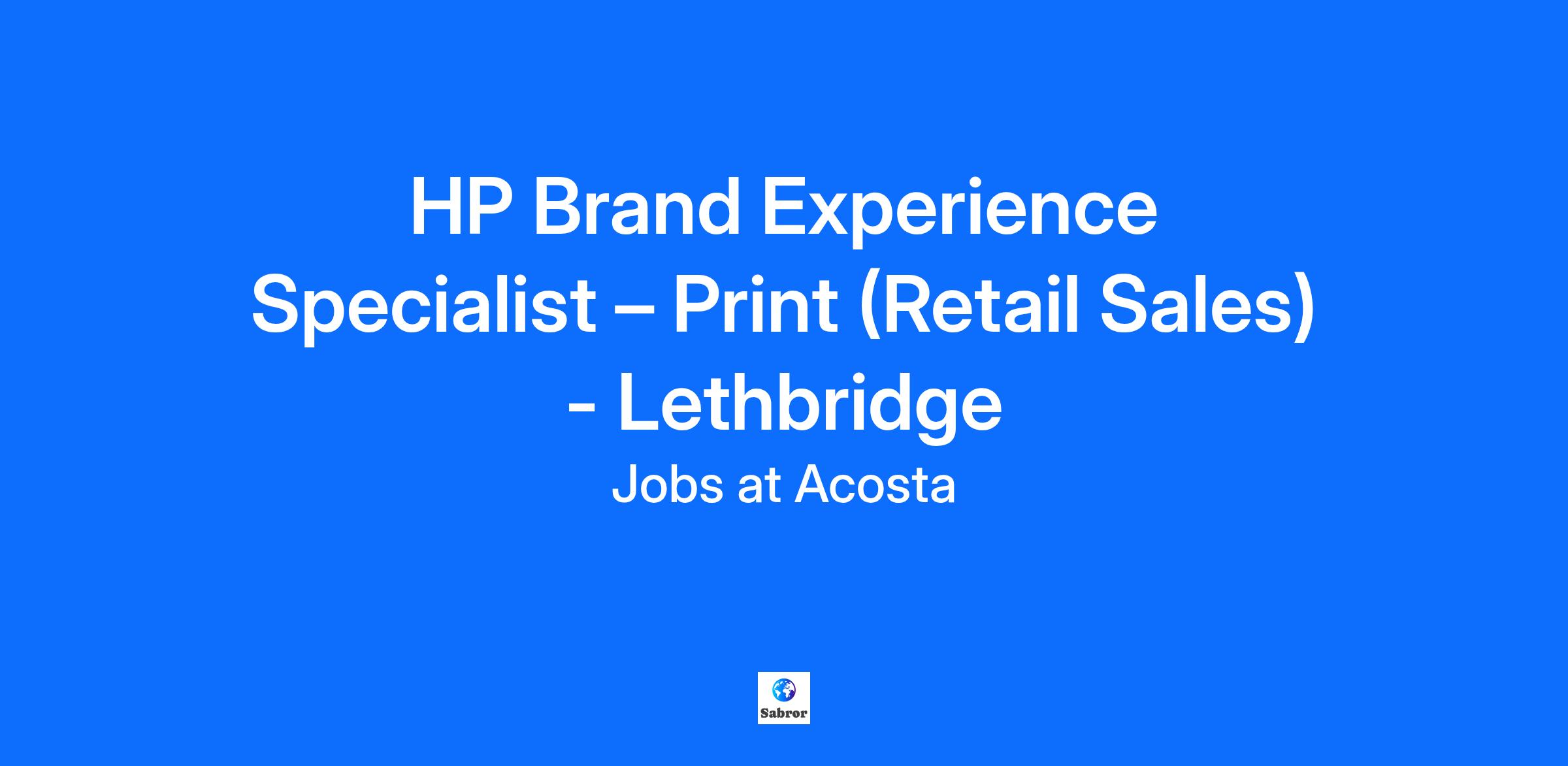 HP Brand Experience Specialist – Print (Retail Sales) - Lethbridge