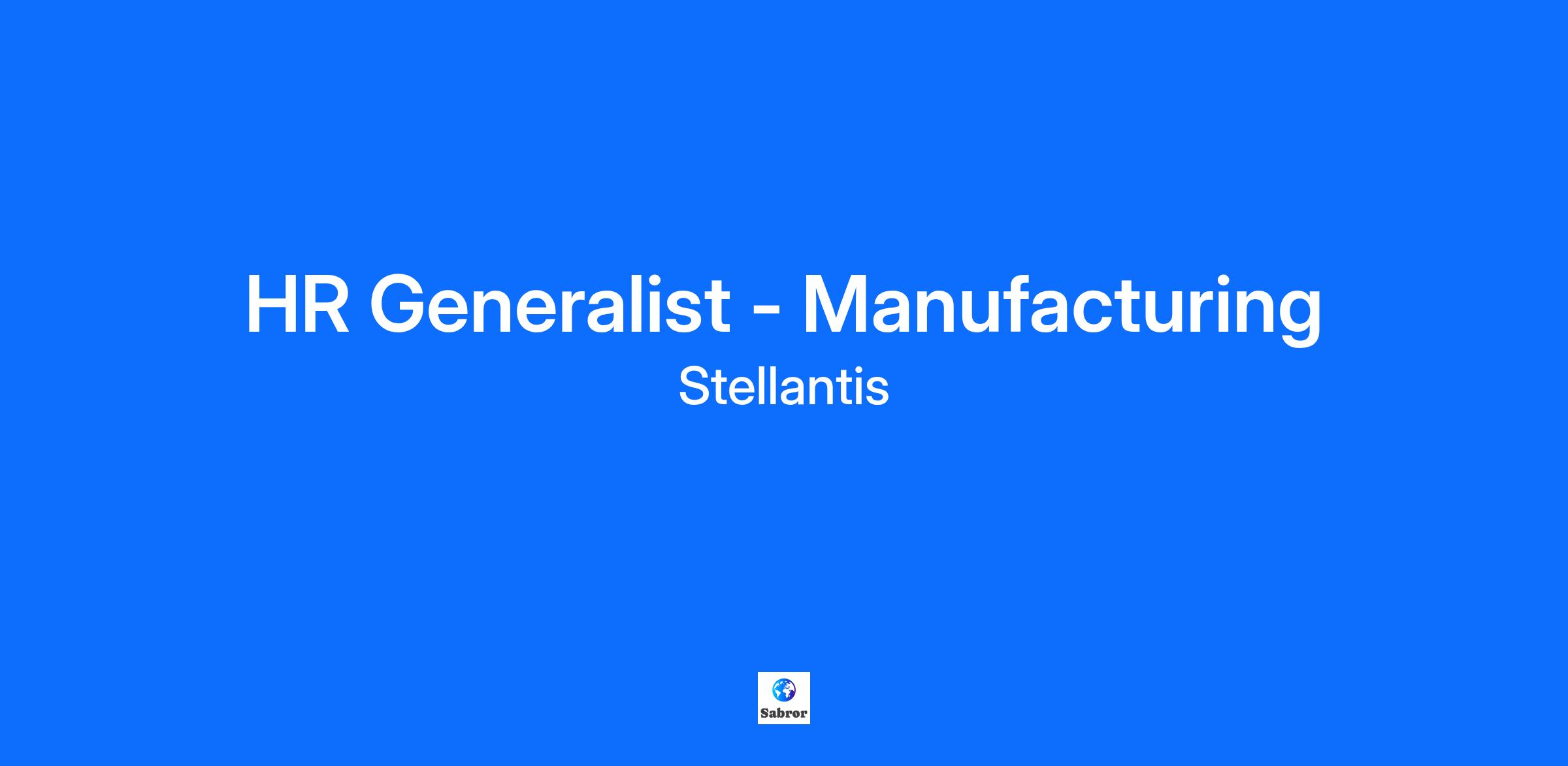 Stellantis is hiring for the HR Generalist position to provide support for all talent acquisition, performance management, employment administration, and talent development related functions at the Windsor Assembly Plant in the manufacturing setting. Full time and contract positions available. Main responsibilities include recruitment and onboarding, management of appraisal cycles, reporting and analytics for HR initiatives, headcount and manpower tracking, administration of all employment status changes and leave programs in accordance with company policy and union contracts, and in compliance with employment legislation. The HR Generalist is the first point of contact for questions and concerns providing guidance and assistance to employees and the management team regarding HR policies and procedures, employment related matters, and employee engagement initiatives. Key Areas of Responsibility: * Supporting all hiring and onboarding of hourly, salary, and skilled trades employees to meet Operational requirements * Conducting interviews and pre-hire assessments * Data entry and workflow administration in Company HRIS system * Status changes including leave tracking, retirement, termination administration * Interpreting and administering collective agreements * Projects and assignments dedicated to diversity, inclusion and engagement * Training, learning, and people development programs * Providing support for labour relations and collective bargaining FCA Canada Inc. is committed to providing accommodation for people with accessibility needs due to disabilities in all aspects of the hiring process. If you request an accommodation, we will work with you to meet your accessibility needs due to disability. Qualifications Basic Qualifications: * Bachelor's degree * Strong interest in expanding your career and growing as a Human Resources professional * Minimum 18 months post graduate experience in the Human Resources field * Interest working in an automotive manufacturing environment * Excellent communication, team building and interpersonal skills * Excellent organizational, attention to detail, and record keeping skills * Highly proficient with Microsoft Office applications and HRIS systems * Legally eligible to work in Canada Preferred Qualifications: * Bachelor's degree in Human Resources, Industrial Relations, Business or related field * Strong project management and analytical skills * Prior human resources or labour relations experience in a unionized environment * Prior direct experience in talent acquisition, performance management, or labour relations * Working knowledge of employment laws and regulations including: Ontario Human Rights Code, Employment Standards Act, Labour Relations Act and the Occupational Health and Safety Act