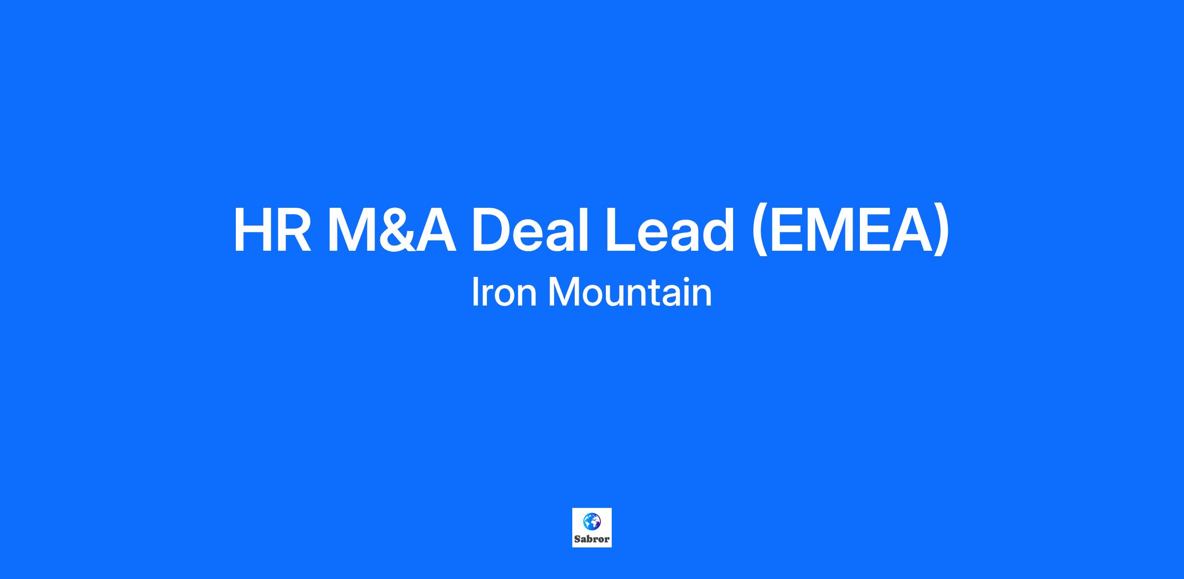 At Iron Mountain we know that work, when done well, makes a positive impact for our customers, our employees, and our planet. That’s why we need smart, committed people to join us. Whether you’re looking to start your career or make a change, talk to us and see how you can elevate the power of your work at Iron Mountain. We provide expert, sustainable solutions in records and information management, digital transformation services, data centers, asset lifecycle management, and fine art storage, handling, and logistics. We proudly partner every day with our 225,000 customers around the world to preserve their invaluable artifacts, extract more from their inventory, and protect their data privacy in innovative and socially responsible ways. Are you curious about being part of our growth story while evolving your skills in a culture that will welcome your unique contributions? If so, let's start the conversation. Iron Mountain is seeking a highly experienced HR M&A Deal Lead to join our Global HR M&A team. This role is critical in supporting Iron Mountain's strategic growth as a serial acquirer, ensuring seamless people and talent integration across multiple corporate transactions. In this role, you will be responsible for leading the HR workstream for M&A due diligence and integration planning/execution, primarily across EMEA-based deals, and serving as the strategic partner to business leaders and deal teams. What You’ll Do (Responsibilities) In this role, you will: Lead and manage all HR- and people-related aspects of M&A and other corporate transactions, ensuring deal team objectives and timelines are met. Collaborate with HR Centers of Excellence (CoEs), Corporate Development, Finance, and Legal teams to develop optimal HR solutions and deliver positive deal outcomes. Ensure compliance with local labor laws, organizational standards, and policies by identifying, scoping, and managing people issues during due diligence and implementing appropriate risk mitigation strategies during integration. What You’ll Bring (Skills & Qualifications) The ideal candidate will have: 10+ years of experience leading HR M&A deal teams in a corporate or consulting environment. Strong knowledge of the M&A deal lifecycle, deal process dynamics, and HR M&A fundamentals. Proven ability in developing strong stakeholder relationships, maintaining effective communication channels, and building trust in a globally matrixed organization. Technical expertise in at least one of the following areas: organization design/global job architecture, HR operations & technology (Workday/Strada), or global benefits. What We Offer (Benefits) Fully remote role. Competitive compensation and benefits aligned with the experience. Flexible work options to support work–life balance. Comprehensive health, wellness, and retirement plans. Opportunities for continuous learning and professional growth. Category: Project/Program Management Group Iron Mountain is a global leader in storage and information management services trusted by more than 225,000 organizations in 60 countries. We safeguard billions of our customers’ assets, including critical business information, highly sensitive data, and invaluable cultural and historic artifacts. Take a look at our history here. Iron Mountain helps lower cost and risk, comply with regulations, recover from disaster, and enable digital and sustainable solutions, whether in information management, digital transformation, secure storage and destruction, data center operations, cloud services, or art storage and logistics. Please see our Values and Code of Ethics for a look at our principles and aspirations in elevating the power of our work together. If you have a physical or mental disability that requires special accommodations, please let us know by sending an email to accommodationrequest@ironmountain.com. See the Supplement to learn more about Equal Employment Opportunity.