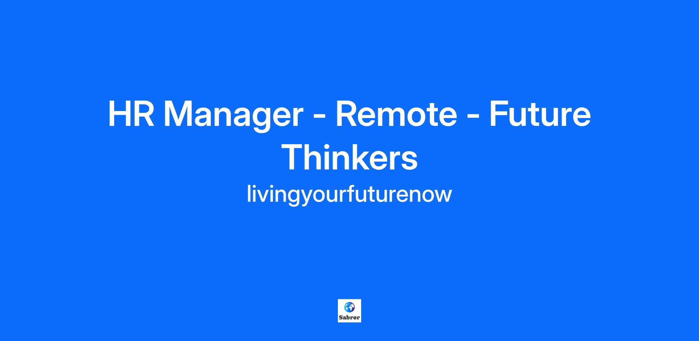 - This role is for HR Managers looking for a change. We are looking for motivated people that want an independent and professional way to take control of their time and outcomes. If you are a values-driven person and want to support and empower others, in a supportive team environment. We are seeking a motivated individual, who thinks outside of the box, and is a big thinker. This role offers the opportunity to individuals who have had previous experience in HR as a HR Manager.