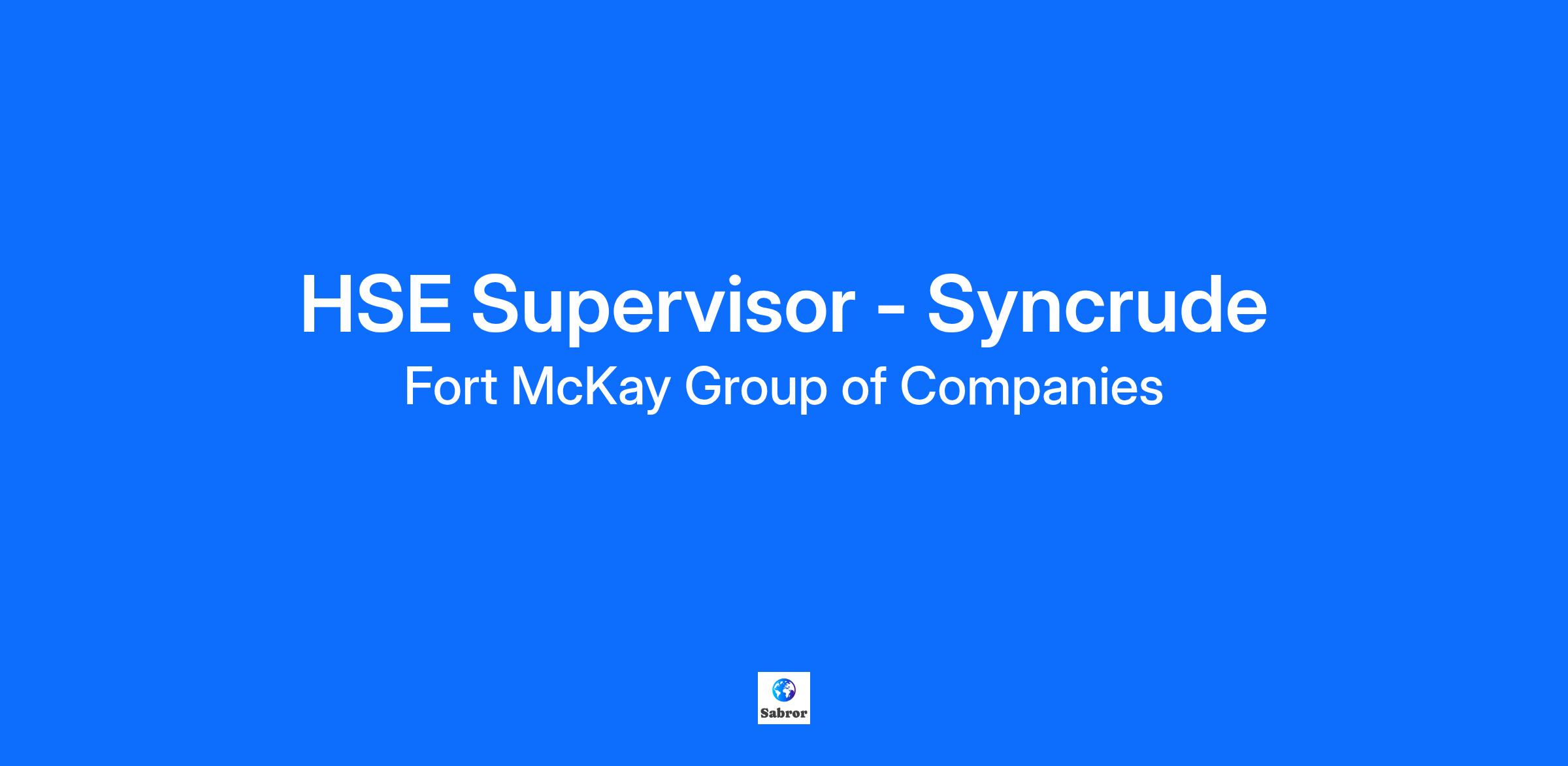 HSE Supervisor - Syncrude