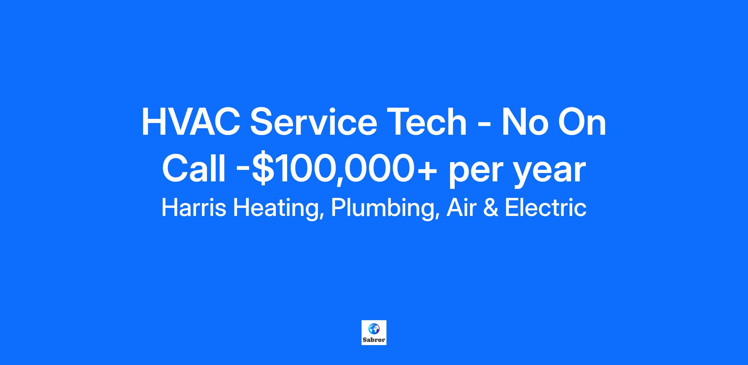 HVAC Service Tech - No On Call -$100,000+ per year