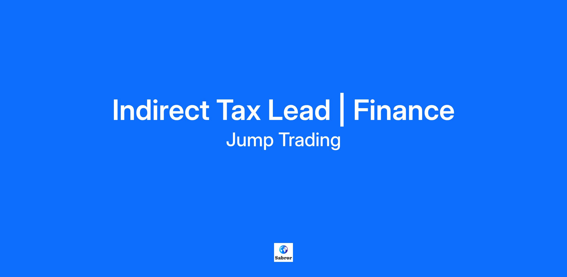 Indirect Tax Lead | Finance