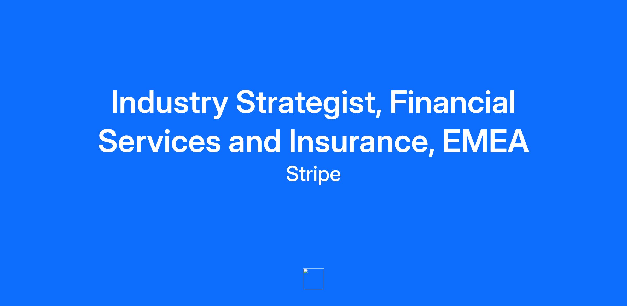 Who we are About Stripe Stripe is a financial infrastructure platform for businesses. Millions of companies - from the world’s largest enterprises to the most ambitious startups - use Stripe to accept payments, grow their revenue, and accelerate new business opportunities. Our mission is to increase the GDP of the internet, and we have a staggering amount of work ahead. That means you have an unprecedented opportunity to put the global economy within everyone's reach while doing the most important work of your career. About the team Creating long term value for our users is central to our mission at Stripe. The GTM Industries team focuses on long term growth and value creation for enterprise customers and for Stripe, by understanding the unique challenges they face in their industry and how to solve them. We focus on building Stripe's expertise within key business verticals, while delivering credibility & thought leadership needed to build relationships with industry leaders to grow the value of their business. Aligned with our GTM and Product teams, the Industry GTM Leads also define relevant, value-centric solutions, support our users and generate new sources of value for users and Stripe Our team provides deep industry expertise across Stripe and leads enterprise business development, partnering with some of our most exciting enterprise and large Saas platforms users to address their business challenges and help them grow with Stripe. What you’ll do As a key member of the Global GTM Industry team, the Financial Services and Insurance EMEA lead will support our growth strategy in the Financial Services and Insurance industry. You will provide the industry expertise needed to define and articulate the value of Stripe’s solutions in an industry context. As an expert in the Financial Services and Insurance industries, the EMEA Industry Lead will bring immediate credibility when engaging with senior executives and across the industry. You will collaborate with the core sales, marketing, product marketing, and product teams to embed deep industry knowledge and support account teams to drive strategic deals. You will be instrumental in leading in-depth product discussions with existing and prospective customers – and building and executing against our go to market strategy. Responsibilities Represent Stripe at Industry events, communities, online events and provide differentiated perspective on industry trends Identify prospective enterprise customers in Financial Services and Insurance industries and supporting account teams in prospecting, pipeline creation and revenue generation Craft high-impact, executive level narrative and presentations for CxOs while working cross functionally with our Sales and Presales teams Support GTM account team across the sales cycle to accelerate the growth of our business with existing and prospective customers, bringing industry experience Serve as both an internal and customer-facing expert on the Financial Services and Insurance industry for Stripe, keeping abreast of global industry and technology trends and how they impact players in EMEA Support and enable sales teams to understand your industry more deeply, creating industry playbooks and leading enablement on industry insights Conduct ongoing research on Financial Services and Insurance industry trends to inform GTM strategy, product market fit, and marketing campaigns to identify companies who could partner with Stripe to drive value in their business Build strong relationships with regional sales leaders to be a key driver on strategic account planning and engagements Support the Partnerships team in identifying, prioritizing and engaging with key financial services partners to build a global ecosystem that powers Stripe’s leadership in the industry Who you are The EMEA GTM Financial Services and Insurance Industry Lead will be a seasoned professional with strong business strategy, business development and go-to-market business model experience. You are an expert in the Financial Services and Insurance industry and have worked in the industry or in a software provider and deeply understand the challenges facing players across this space. You are capable of engaging in business-level and technical conversations at multiple levels of the organization. This person will have strong capability in solution definition, excellent communication skills (can clearly describe strategy and drill into tactics), and the ability to interact with all functions, disciplines, and levels in the organization. You are used to building value in competitive situations and enjoy working on products that require deep product understanding, combined with technical knowledge. You’re as comfortable working with clients as with internal stakeholders (including executives). You’re excited to become an expert and to share your knowledge. You’re an organized self-starter, an excellent communicator who is highly analytical and has a track record for improving the processes and organizations around you. You like to roll-up your sleeves and make things happen! Minimum requirements 12+ years experience in payments or technology industry related roles with deep knowledge of the Financial Services and Insurance industry and a track record of top performance; with a particular focus on insurance. Desired: A commercial mindset, ideally with direct sales experience closing new business and/or expansion of existing users. Ability to understand complex technical requirements and craft solutions across multiple stakeholders. Experience in defining user needs and translating those needs into solutions and GTM strategies Strong verbal and written communication skills, including presentation skills, particularly for in-person meetings with multiple stakeholders. Strong analytical and problem solving skills, including the ability to derive actionable insights from large amounts of information and clearly articulate complex ideas A
