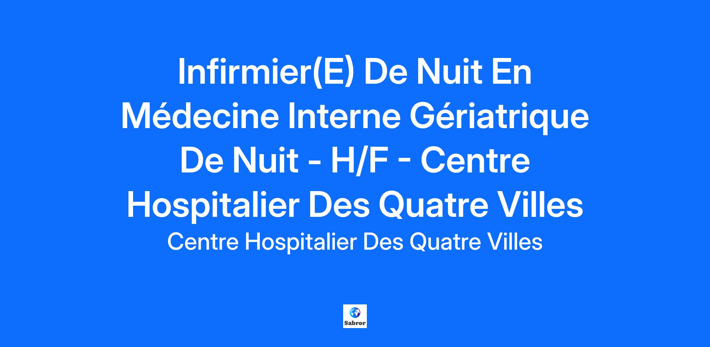 Le Centre Hospitalier des Quatre Villes (92) est un établissement dynamique de 600 lits répartis sur 3 sites dans les villes de Sèvres et de Saint Cloud. Il est établissement support du GHT 92. Le CH4V recrute un(e) Infirmier(e) de nuit pour son service de Médecine Interne Gériatrique, site de Sèvres.