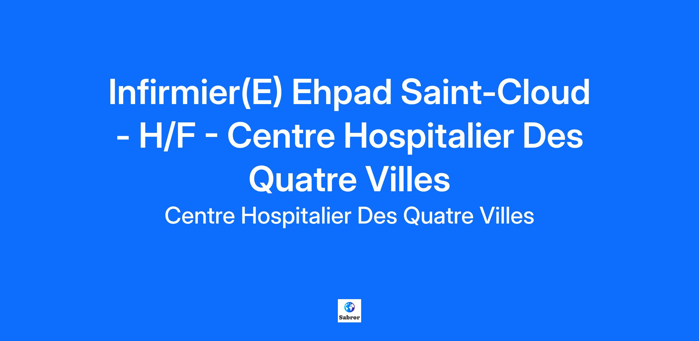 Le Centre Hospitalier des 4 Villes (92) recrute un(e) infirmier(e) pour son EHPAD Laval situé sur le site de Lelégard à Saint-Cloud.