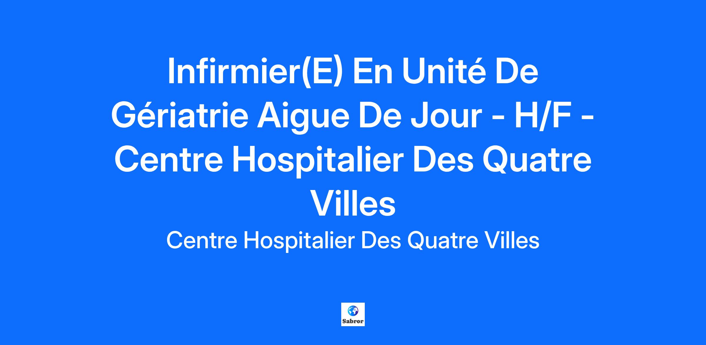 Le Centre Hospitalier des Quatre Villes (92) est un établissement dynamique de 600 lits répartis sur 3 sites dans les villes de Sèvres et de Saint Cloud. Il est établissement support du GHT 92. Le CH4V recrute un(e) Infirmier(e) pour son service d'Unité de Gériatrie Aigue, site de Sèvres.