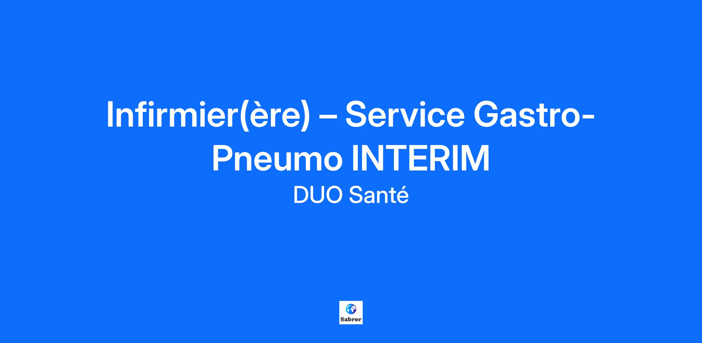 Recherche un(e) Infirmier(ère) Diplômé(e) d’État pour rejoindre son service de Gastro-entérologie et Pneumologie, un service polyvalent accueillant des patients présentant des pathologies digestives, respiratoires et chroniques nécessitant une surveillance rapprochée. Vos missions en service Gastro-Pneumo Ce service combine la prise en charge des pathologies digestives (maladies inflammatoires chroniques de l'intestin, hépatologie, pancréatites, cancers digestifs, post-endoscopie…) et des pathologies respiratoires (BPCO, insuffisance respiratoire, infections pulmonaires, asthme sévère, pathologies pleurales, post-fibroscopie…). Vos responsabilités quotidiennes : Prise en charge des patients en Gastro-entérologie Administration et surveillance des traitements : perfusions, antibiothérapie, traitements des MICI, hydratation.-Surveillance des patients post-examens (endoscopies, coloscopies, poses de gastrostomie…). - Gestion de la douleur abdominale, des troubles digestifs et des risques de déshydratation. -Surveillance des constantes et des bilans biologiques. Prise en charge des patients en Pneumologie Suivi des patients en insuffisance respiratoire : saturation O₂, fréquence respiratoire, traitements inhalés.- Gestion et surveillance de l’oxygénothérapie, aérosols, VNI selon protocoles. -Soins post-fibroscopie, aide à la mobilisation et prévention des encombrements bronchiques.- Observation de la respiration, gestion des détresses respiratoires en lien avec le médecin. Soins infirmiers généraux Horaires : 8h30 – 15h30 Pourquoi travailler avec Duo Santé ? Duo Santé se distingue par sa proximité, son écoute et sa volonté de valoriser pleinement les professionnels du soin. Les avantages Duo Santé : Planning flexible : vous choisissez vos jours de disponibilité. Missions adaptées à votre expérience et à vos préférences. Rémunération attractive, Accompagnement personnalisé par un interlocuteur dédié, attentif à votre bien-être professionnel. Prêt(e) à rejoindre l’aventure ?