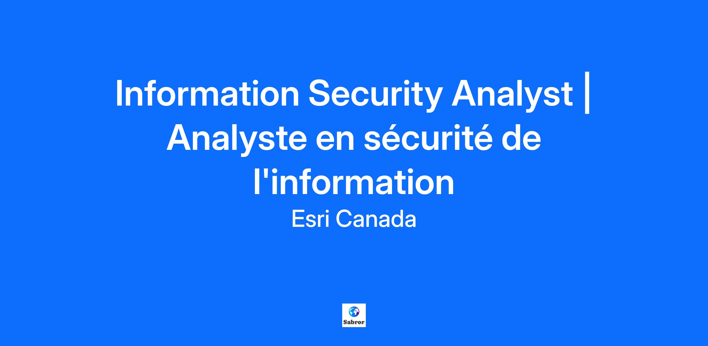 Esri Canada has an exceptional opportunity for an Information Security Analyst to join our Technology Infrastructure department.
