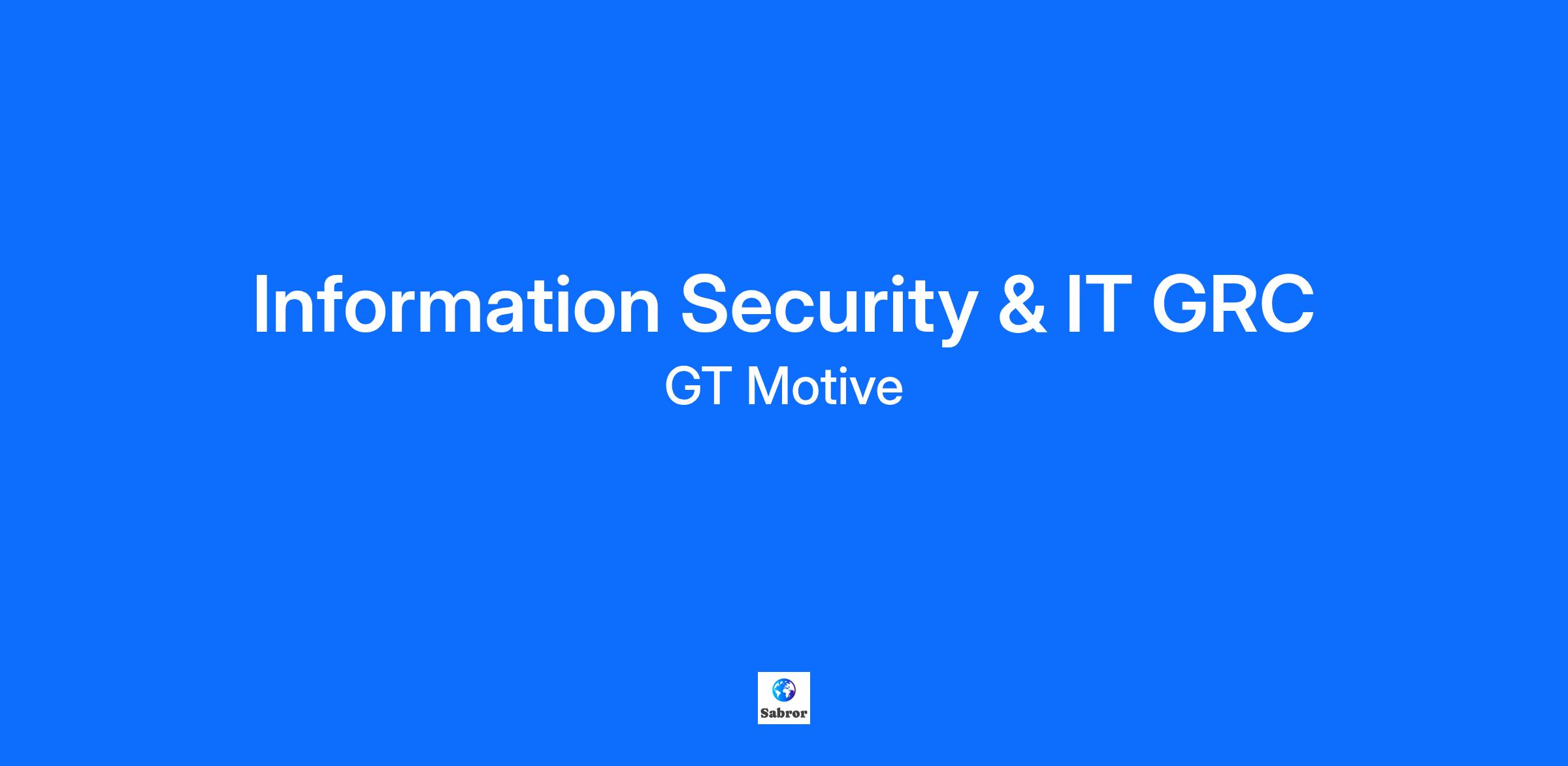 Como Information Security & IT GRC tu misión principal será la gestión y apoyo en las tareas de IT Assurance: Seguridad de la Información, Protección y Resiliencia, Gobierno de IT, y cumplimiento de estándares, normativas de seguridad y tecnología aplicables a GT Motive.