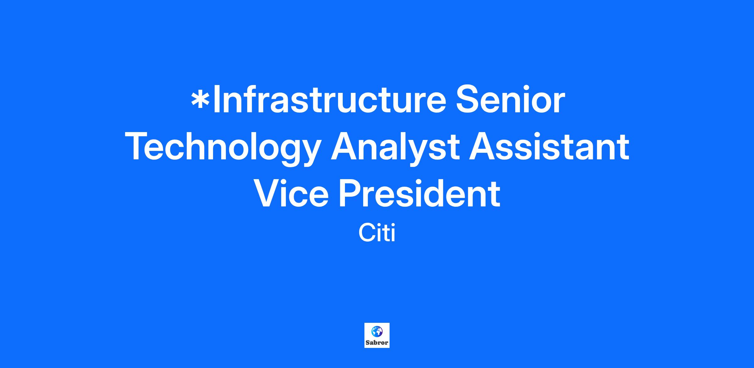 *Infrastructure Senior Technology Analyst Assistant Vice President