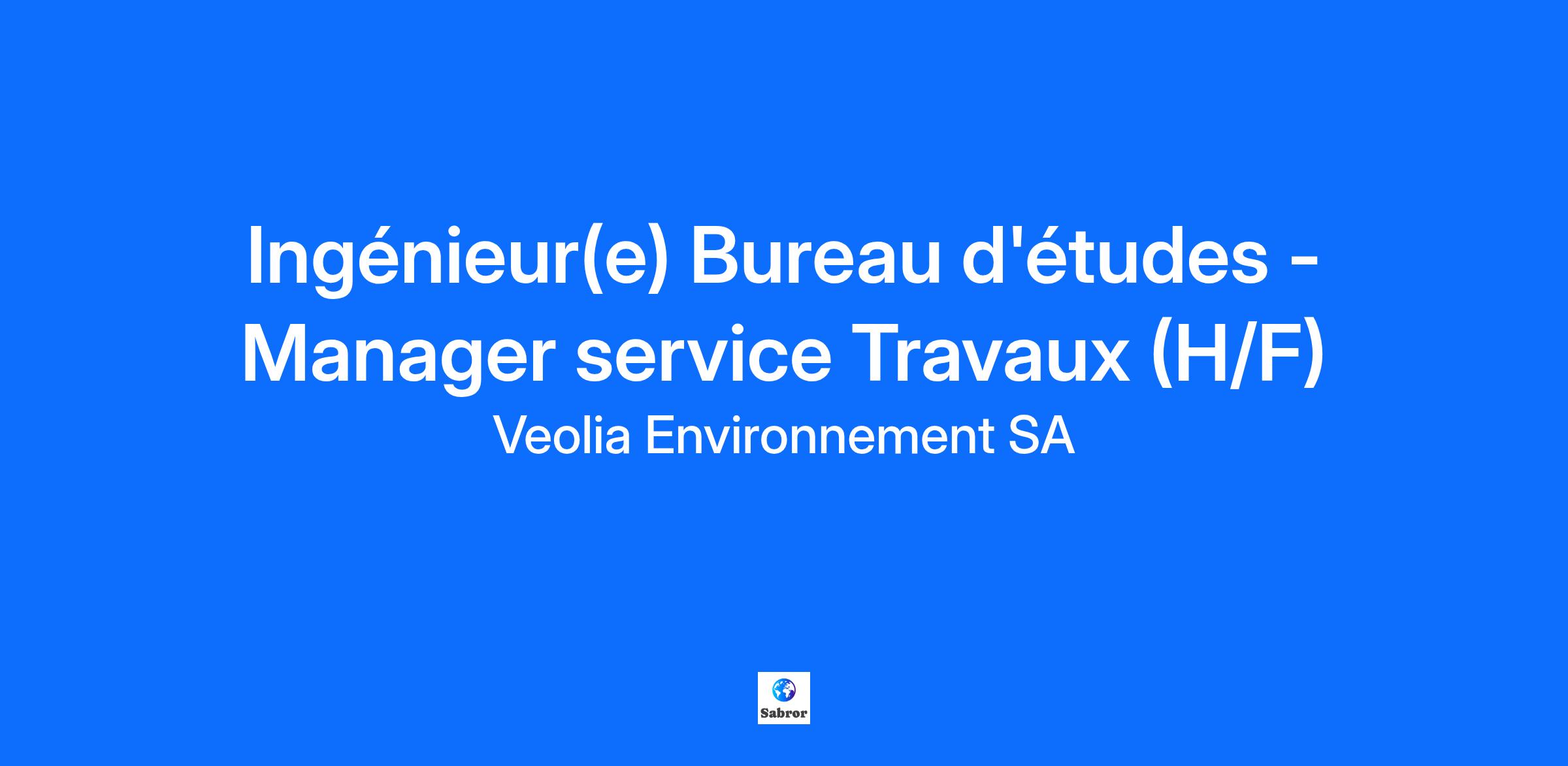 Ingénieur(e) Bureau d'études - Manager service Travaux (H/F)