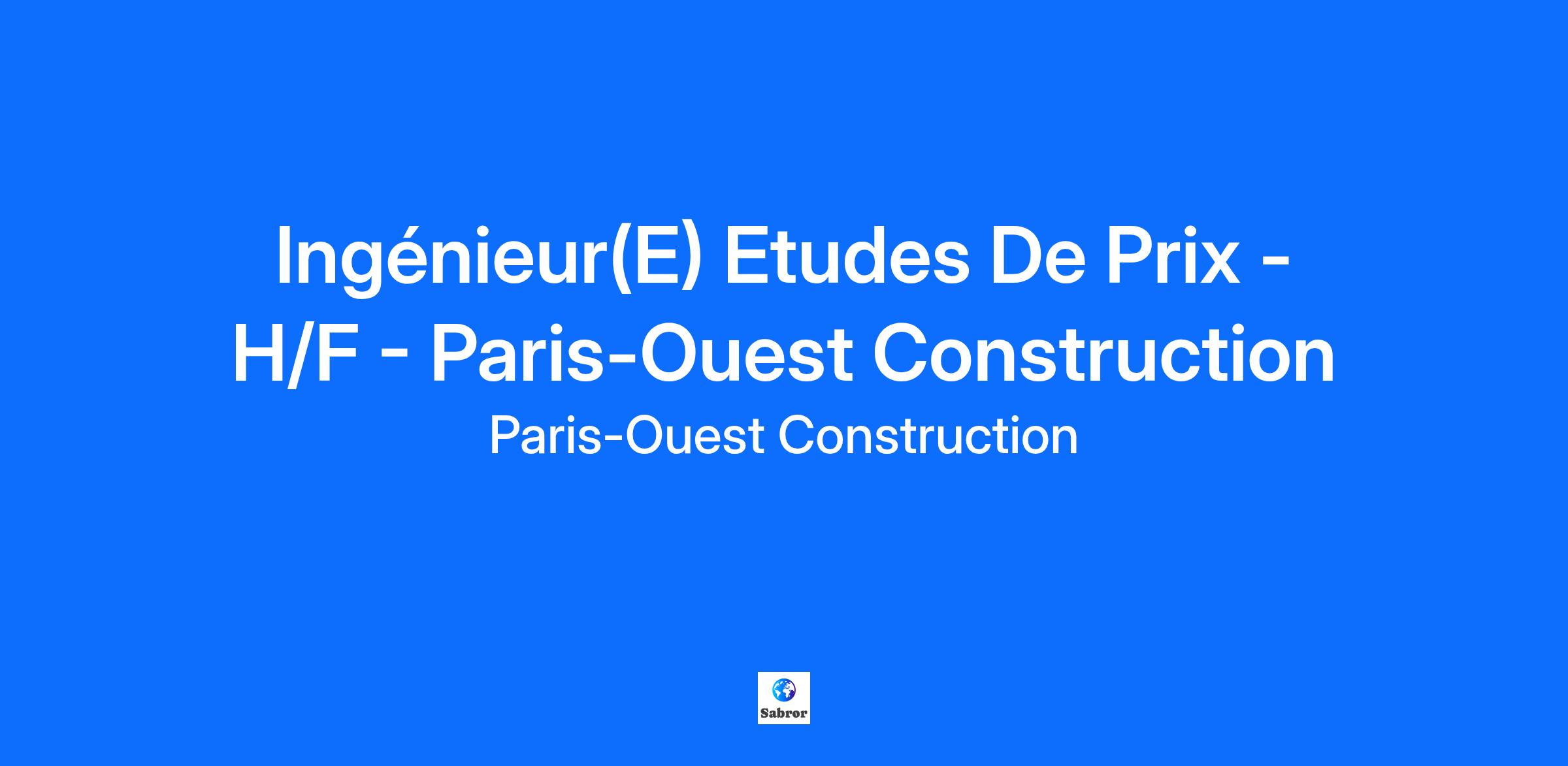 Dans le cadre de notre redite, pour sa Direction Commerciale et Etudes de Prix Travaux Neufs, Paris-Ouest Construction recrute son/sa futur(e)