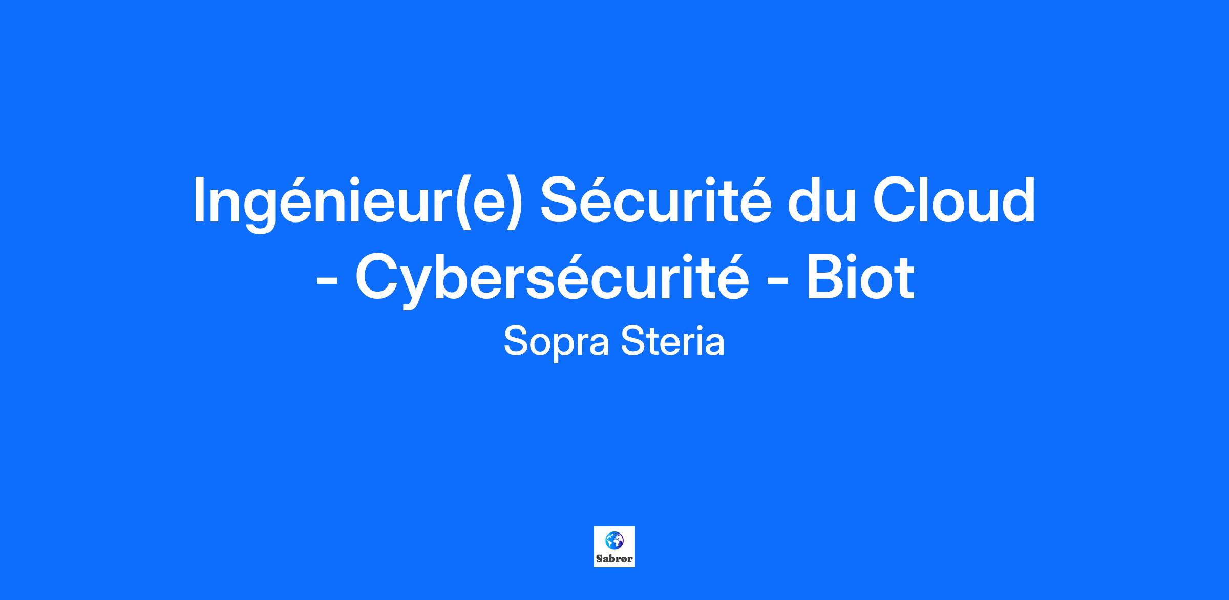 Ingénieur(e) Sécurité du Cloud - Cybersécurité - Biot