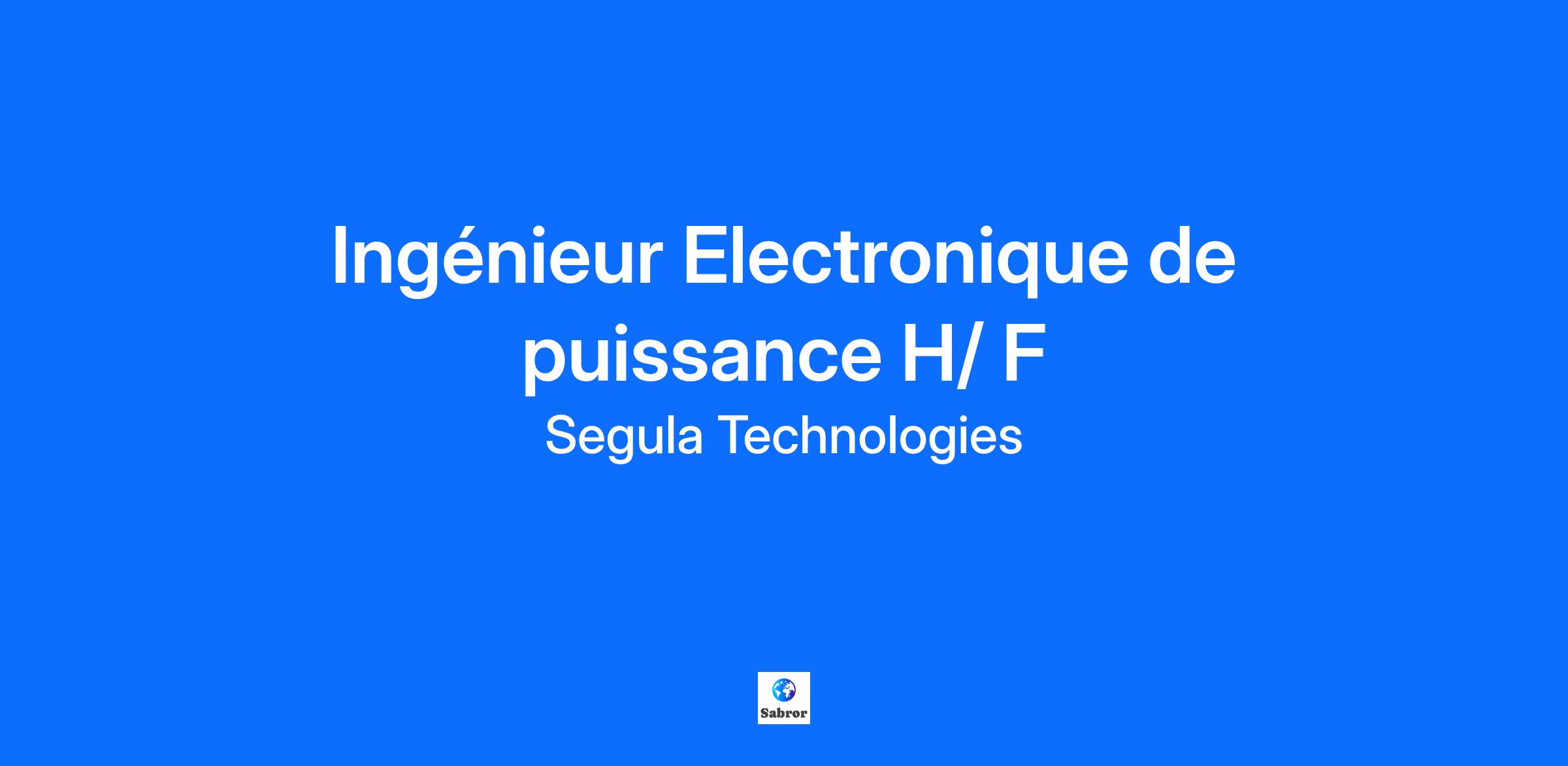 Description de l'entreprise Accélérez votre carrière au sein d’un groupe d’ingénierie mondial à forte croissance. Chez SEGULA Technologies, vous travaillerez sur des projets passionnants et contribuerez à façonner l’avenir au sein d’une entreprise pour qui l’innovation est indissociable de l’ingénierie. Impression 3D, réalité augmentée, véhicule autonome, usine du futur… rythment le quotidien de nos 15 000 ingénieux collaborateurs, pourquoi pas le vôtre ? À côté de chez vous ou à l’autre bout de la planète, vous trouverez chez SEGULA Technologies l’opportunité qui donnera un sens nouveau à votre carrière ! Description du poste Dans le cadre de nouveaux projets dans le secteur aéronautique, vous prenez en charge le développement d’un équipement de puissance et vous intervenez sur l’ensemble du cycle de développement. Vous proposez et définissez des solutions d’architecture électronique en accord avec le responsable technique et en phase avec les exigences du projet client, bâties sur les technologies : MOS, IGBT, SIC, GAN. Vous concevez les cartes électroniques (schémas, routage, validation). Vous dessinez les alimentations de puissance à base de MOSFET, jusqu’à 500 V. Vous vérifiez les aspects CEM et Thermique des conceptions. Vous rédigez la documentation technique nécessaire. Vous intervenez en support des analyses de Sécurité / AMDEC. Qualifications De formation Ingénieur en Génie Electrique, Electronique, vous justifiez d'une expérience d’au moins 6 ans sur un poste similaire et maitrisez impérativement les compétences suivantes : 1. Electronique analogique et Electronique de puissance (alimentation, filtrage, drivers…), et technologies et composants de puissance, SIC, GAN notamment. 5. Maitrise de la conception de carte électronique : Cao, Cem et testabilité, 6. Maitrise des outils de simulation, des techniques de régulation, des onduleurs, des chargeurs et des convertisseurs DCDC. Vous connaissez les outils de simulation comme PSPICE Altium et la norme DO 160. Vous parlez anglais couramment. Votre expertise technique, votre bon relationnel client, votre rigueur et votre dynamisme vous permettront de mener à bien ce projet. Informations complémentaires SEGULA TECHNOLOGIES est une entreprise attachée à la mixité et à la diversité, nous reconnaissons et recrutons tous les talents. #LI-LSTFT #SegulaRecrute